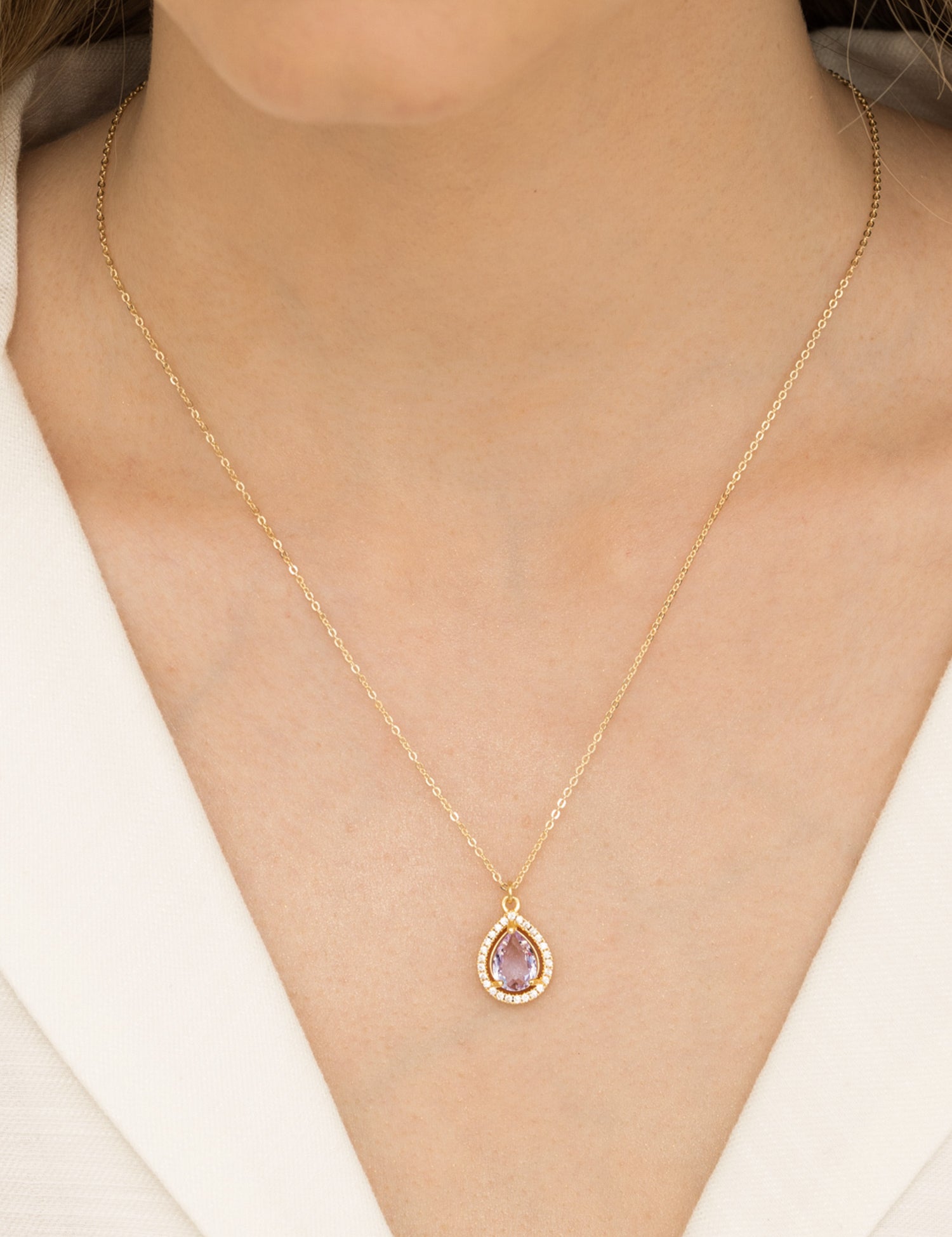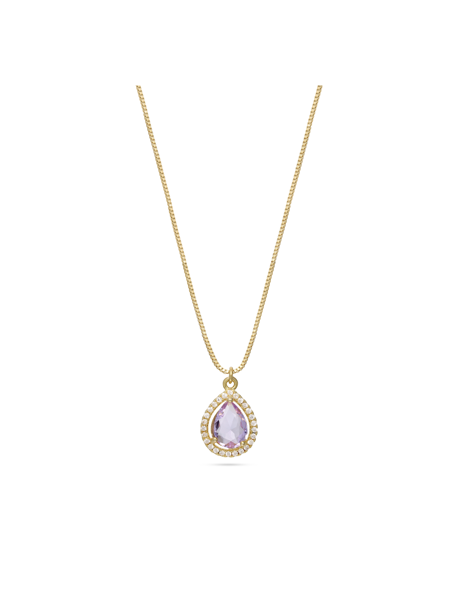 Fio com pendente violeta banhado a ouro com zircónias e vidro cristal