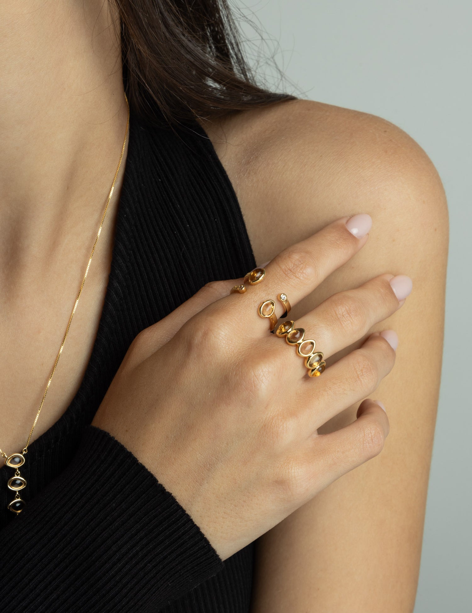 Anel banhado a ouro com cristais castanhos