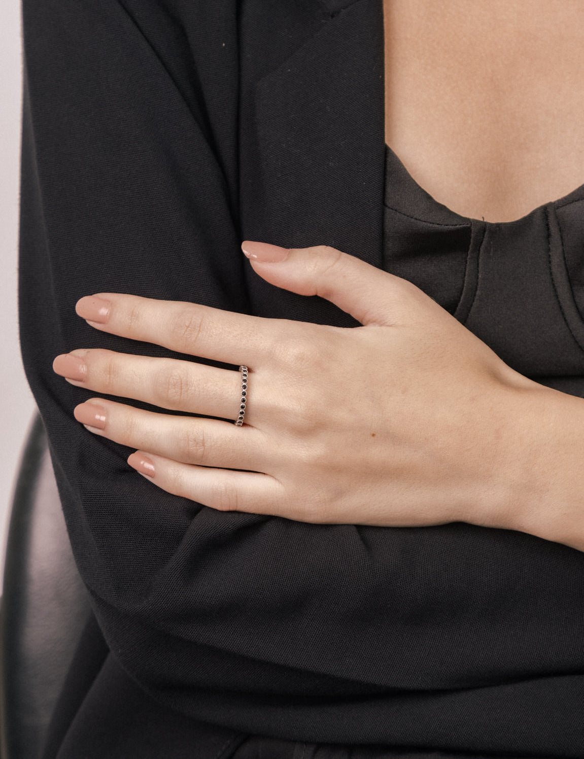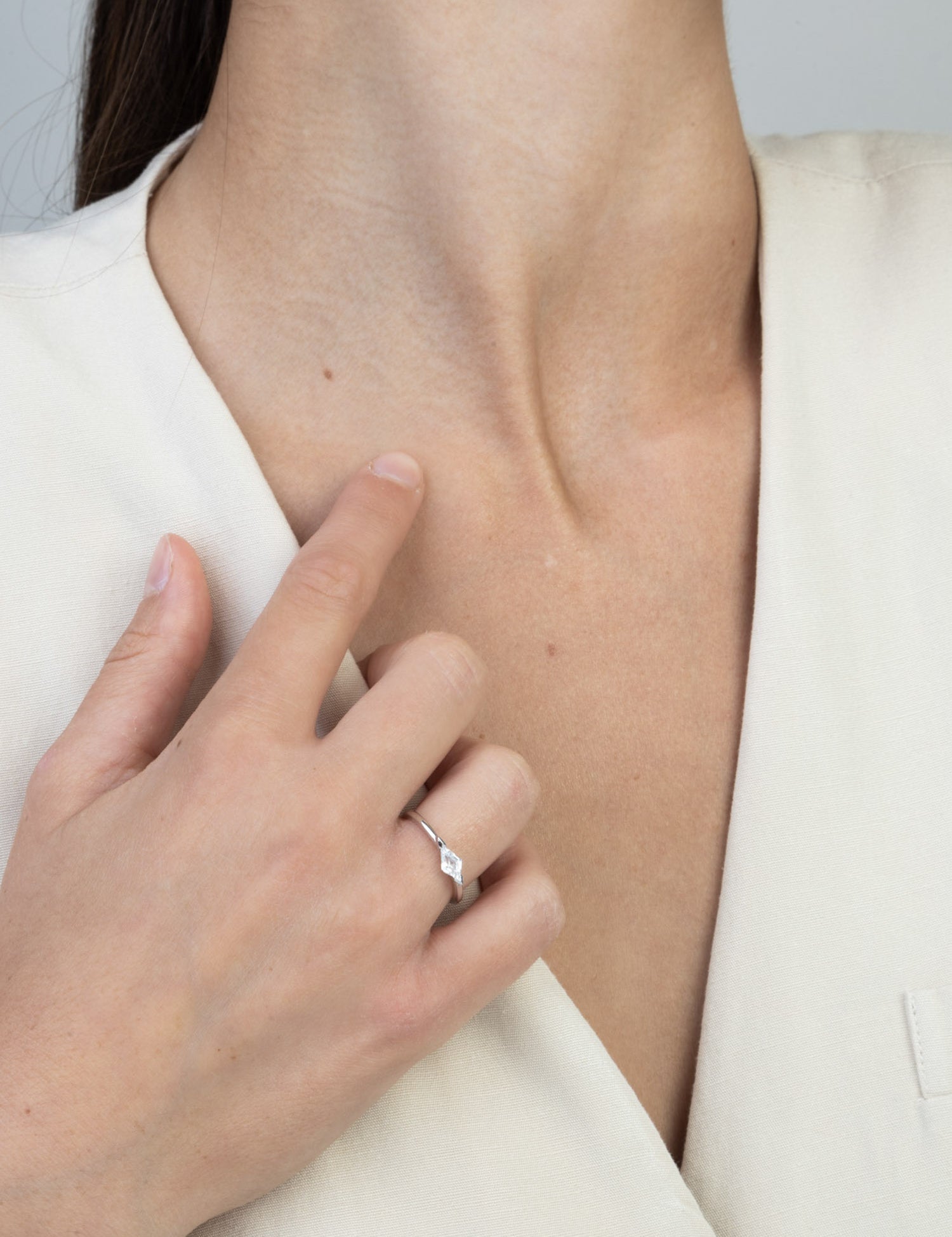 Anel aberto em prata de lei 925 com zircónia e pérola