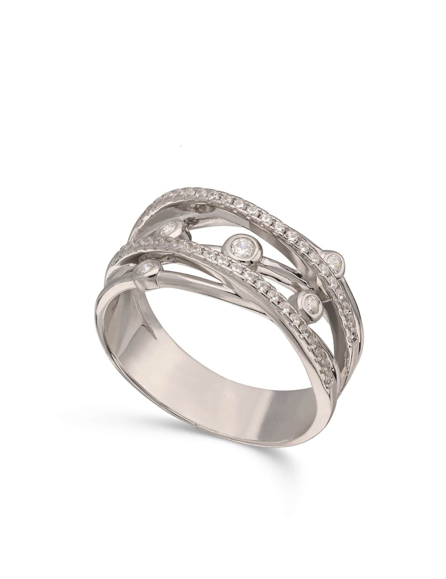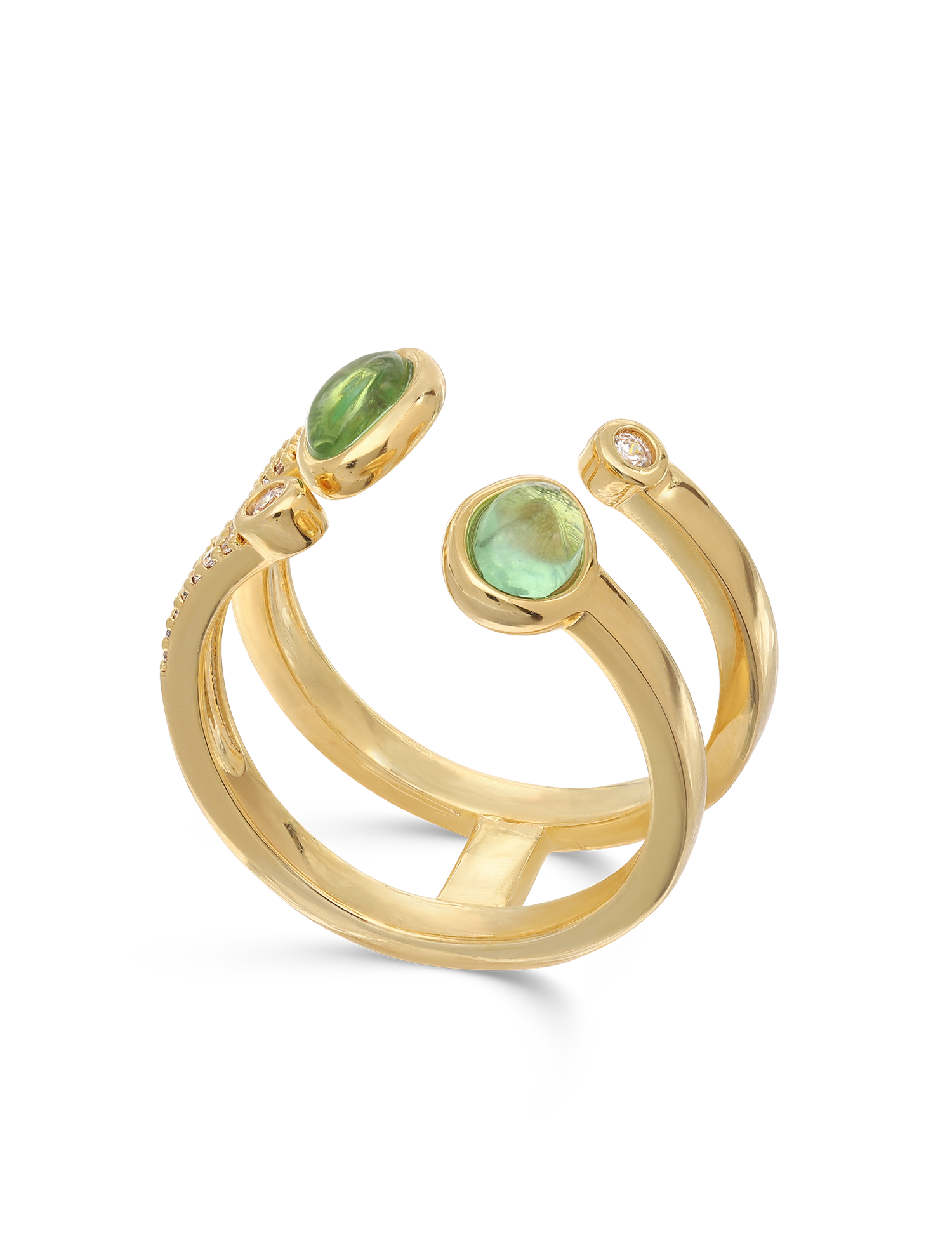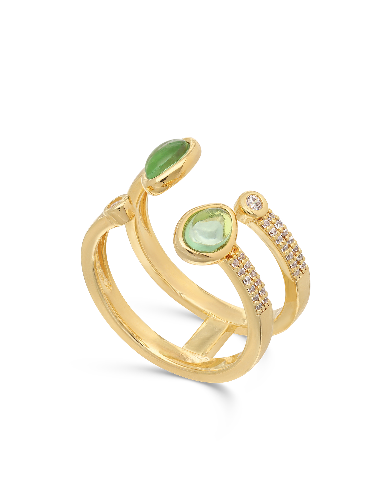Anel delicado banhado a ouro com zircónia e vidro cristal verde