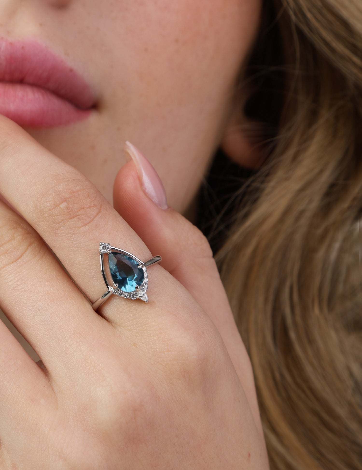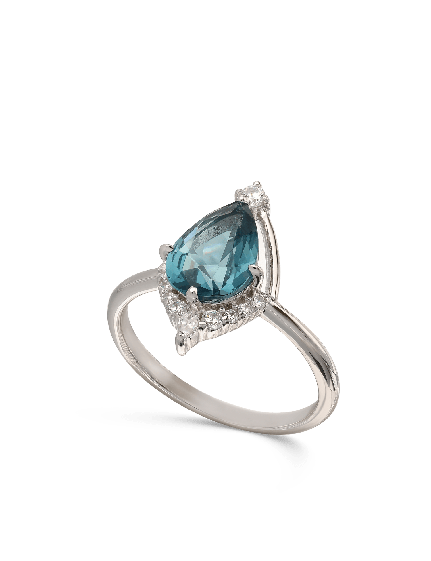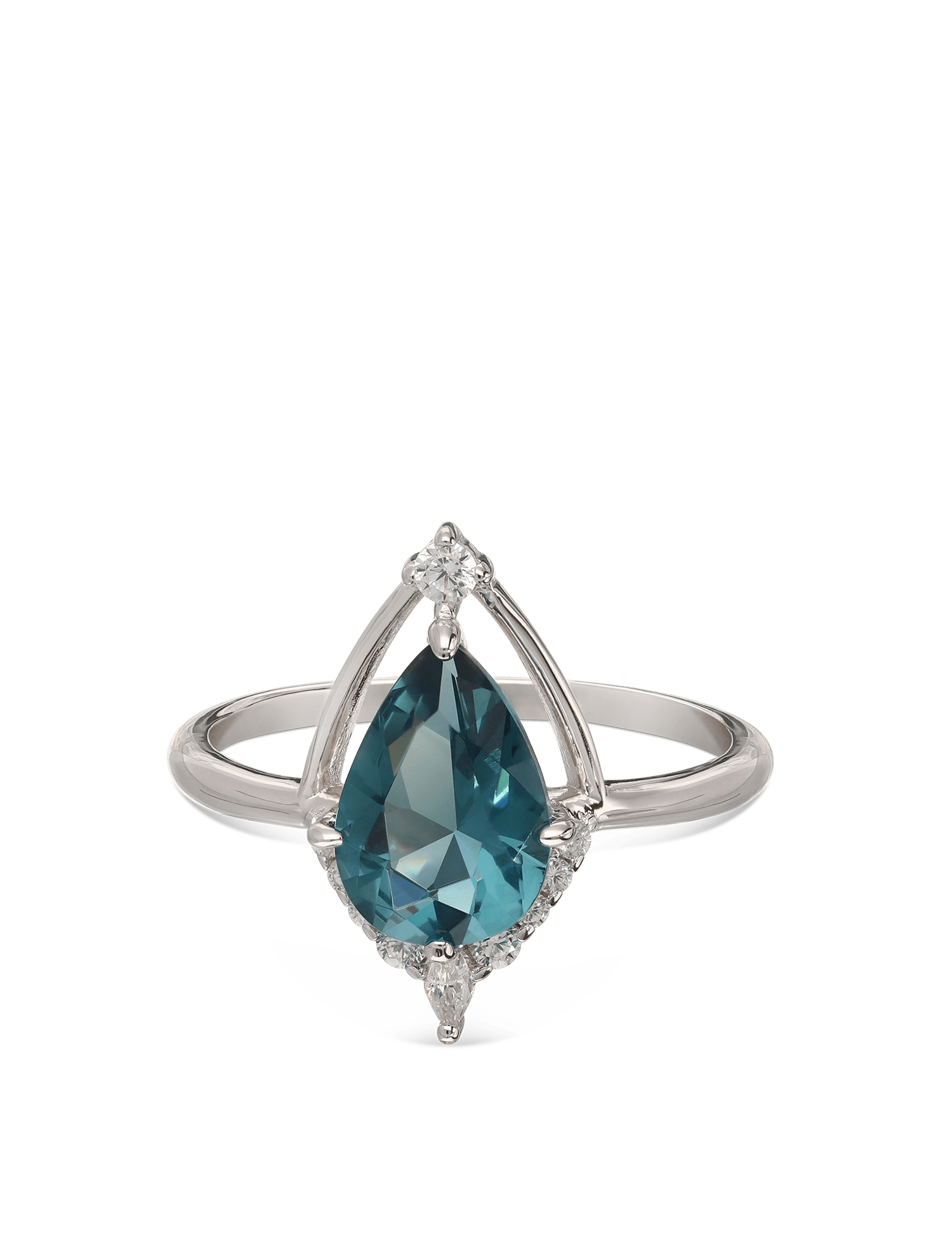 Anel delicado banhado a ouro com zircónia e vidro cristal verde