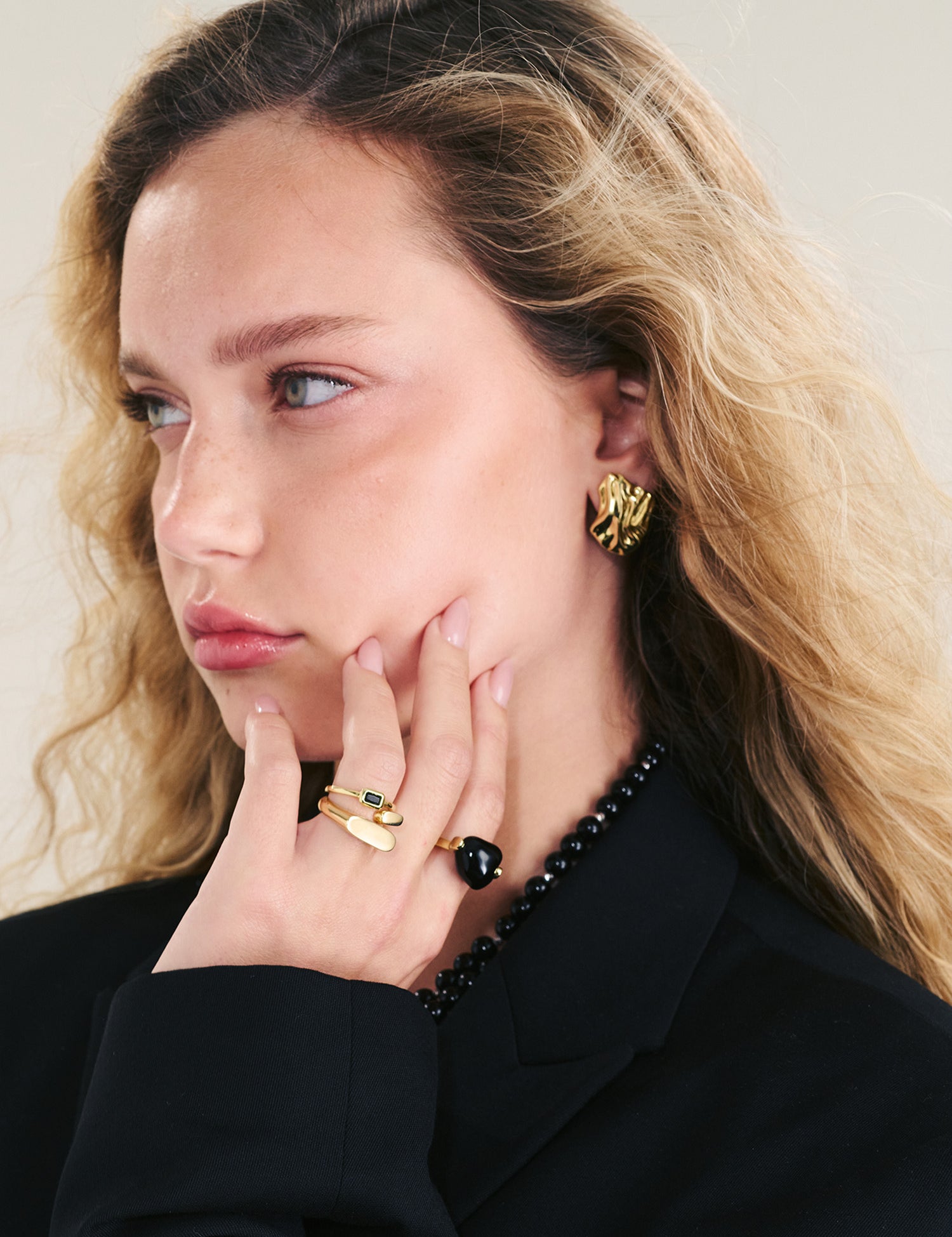 Anel Delicado, Banhado a Ouro, Ónix de cultivo