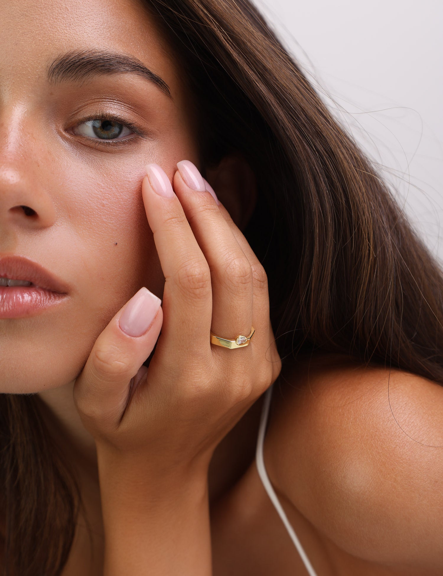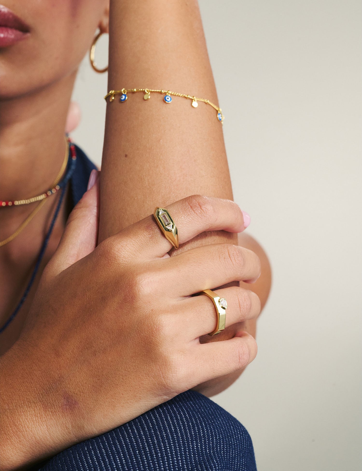 Anel aberto em prata de lei 925 com zircónia e pérola