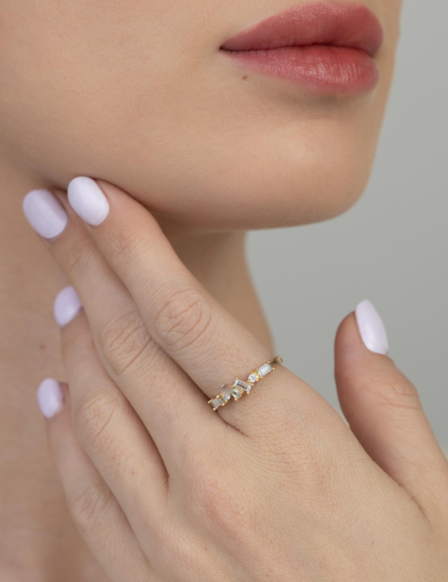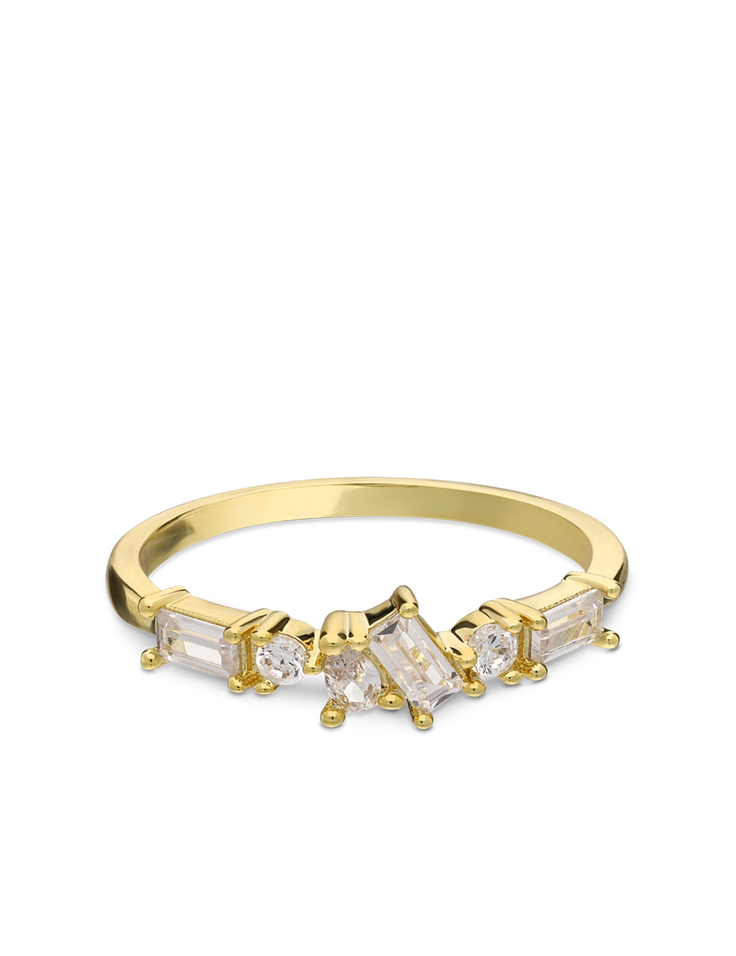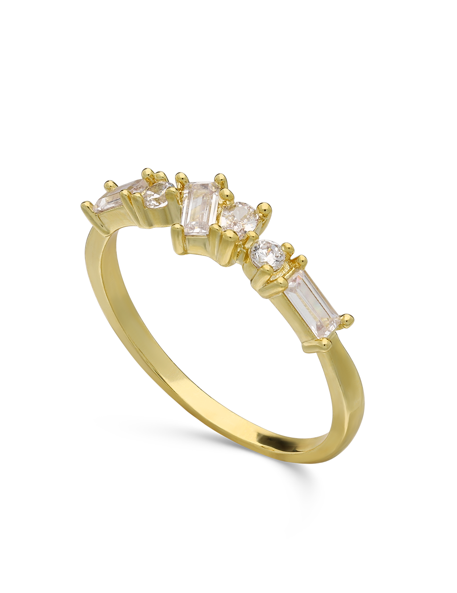 Anel delicado banhado a ouro com zircónia e vidro cristal verde