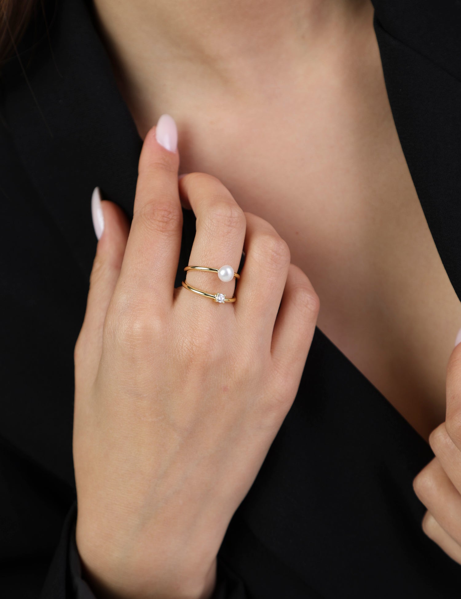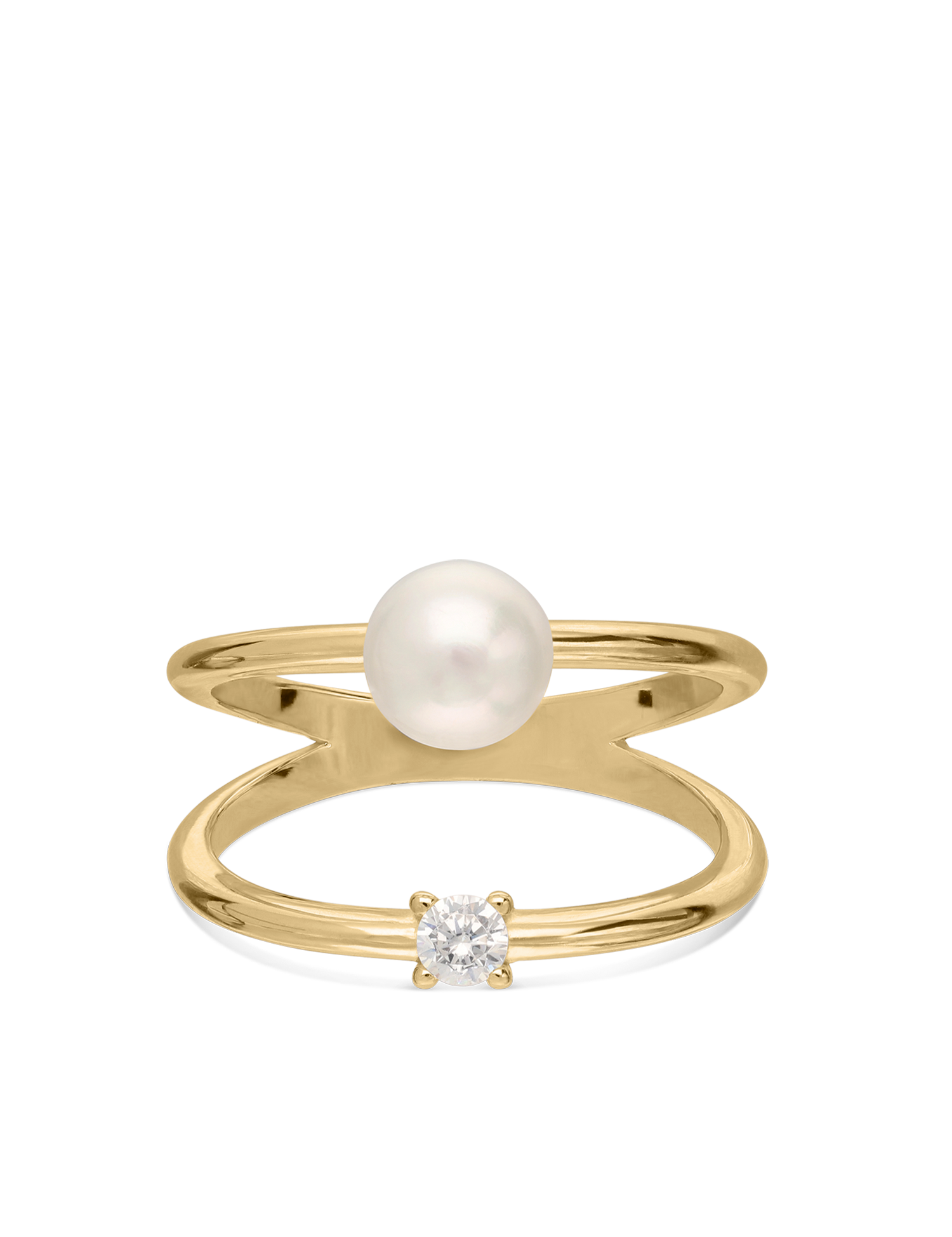 Anel Delicado, Banhado a Ouro, Zircónia de cultivo, Pérola cultivada