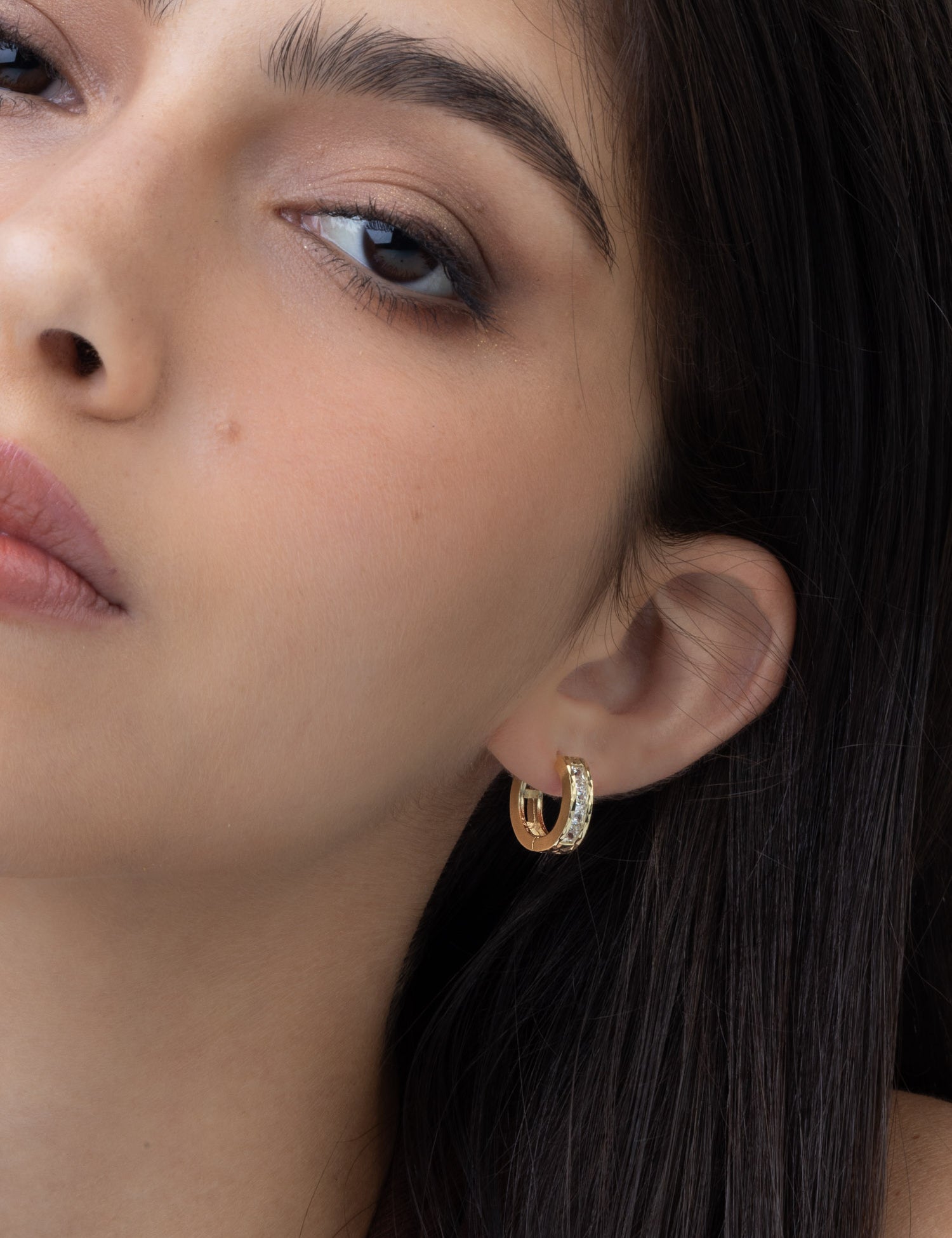 Pendentes círculo banhados a ouro com zircónia e swarovski branco