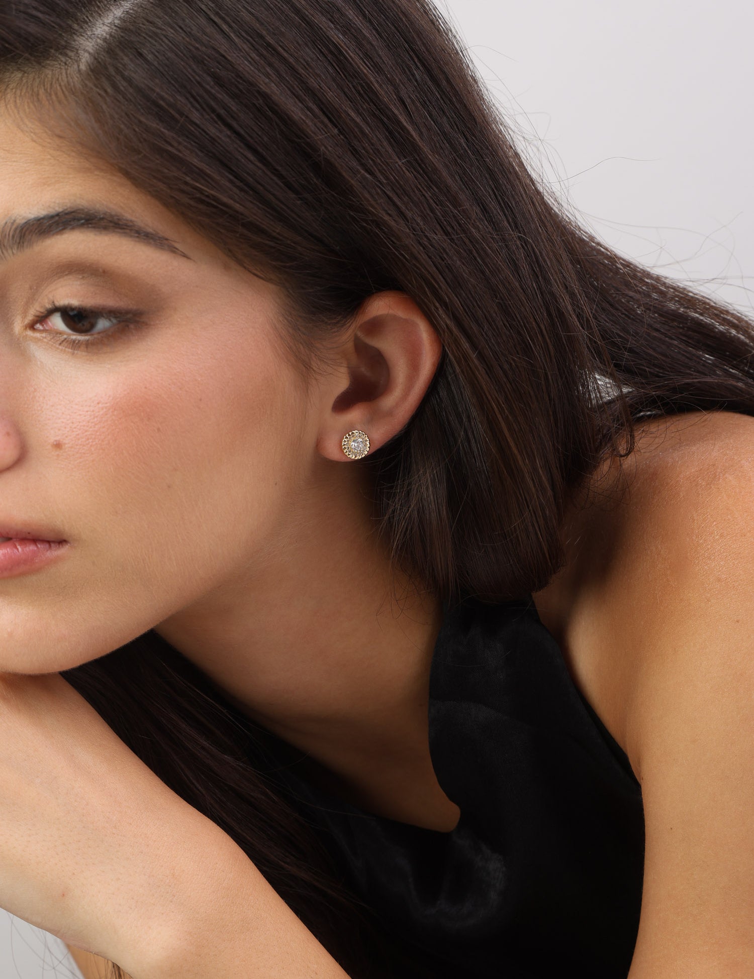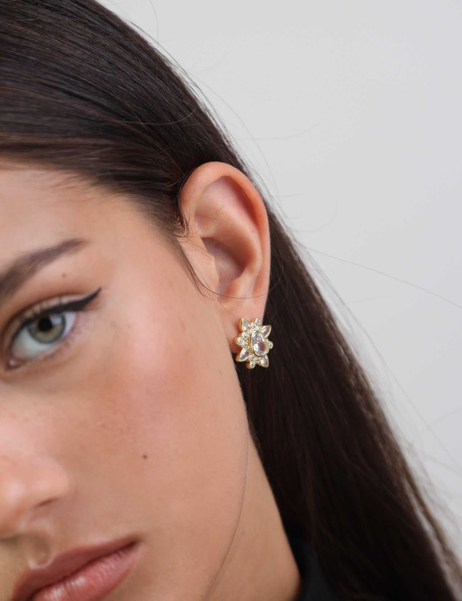 Brincos de placa banhados a ouro com zircónias castanhas