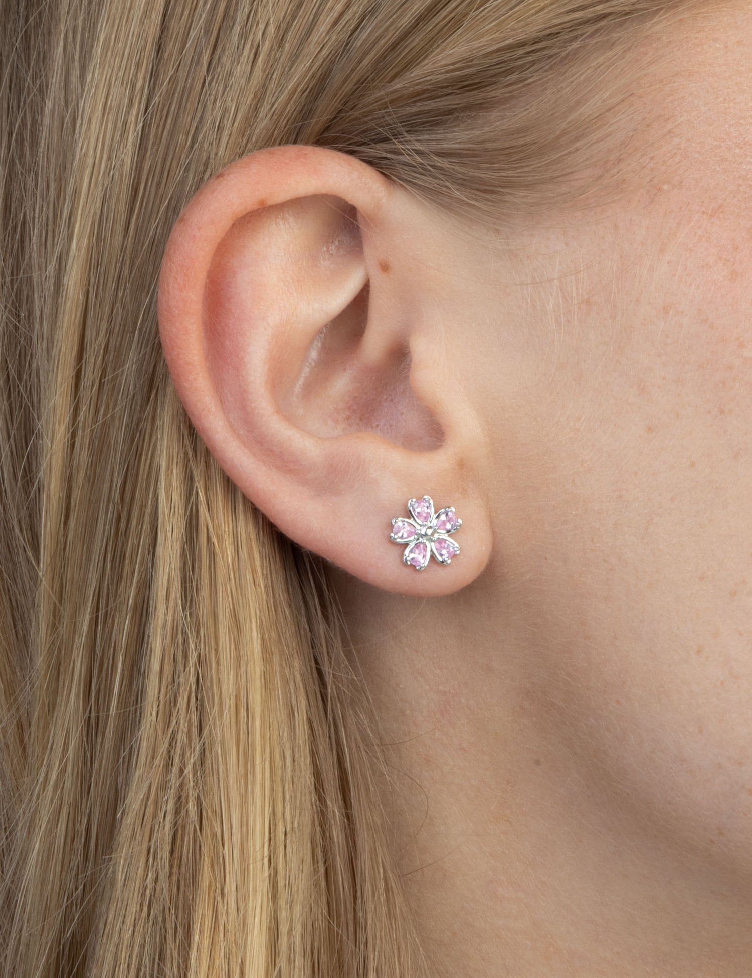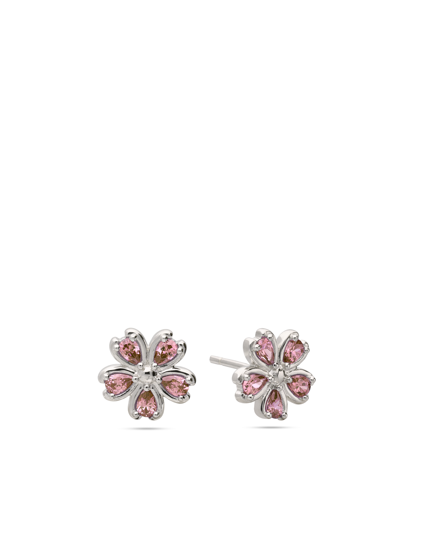 Brincos de placa flor em prata 925 com zircónias rosa