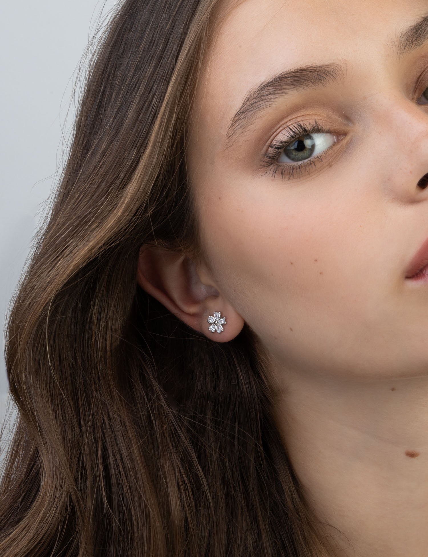 Brincos de placa flor em prata 925 com zircónias