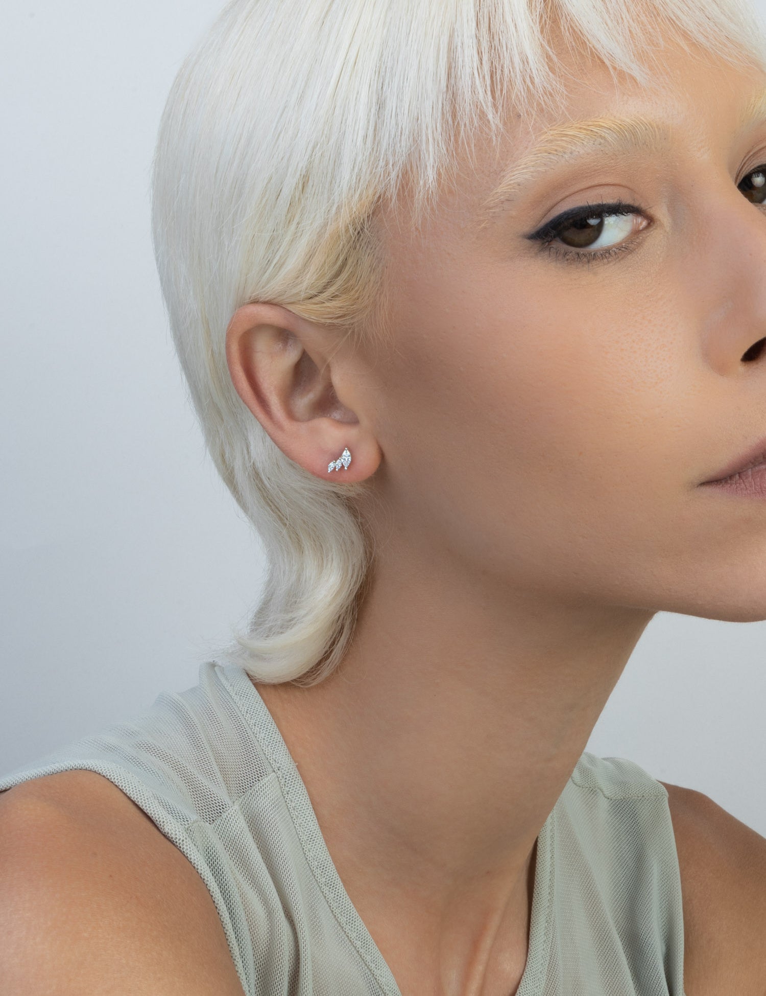 Brincos de placa folha em prata 925 com zircónias