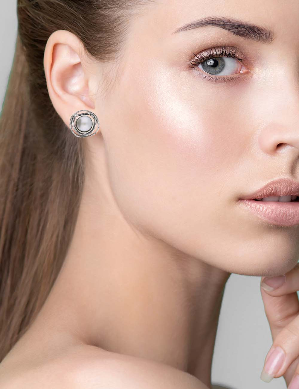 Brincos de placa em prata 925 com pérola
