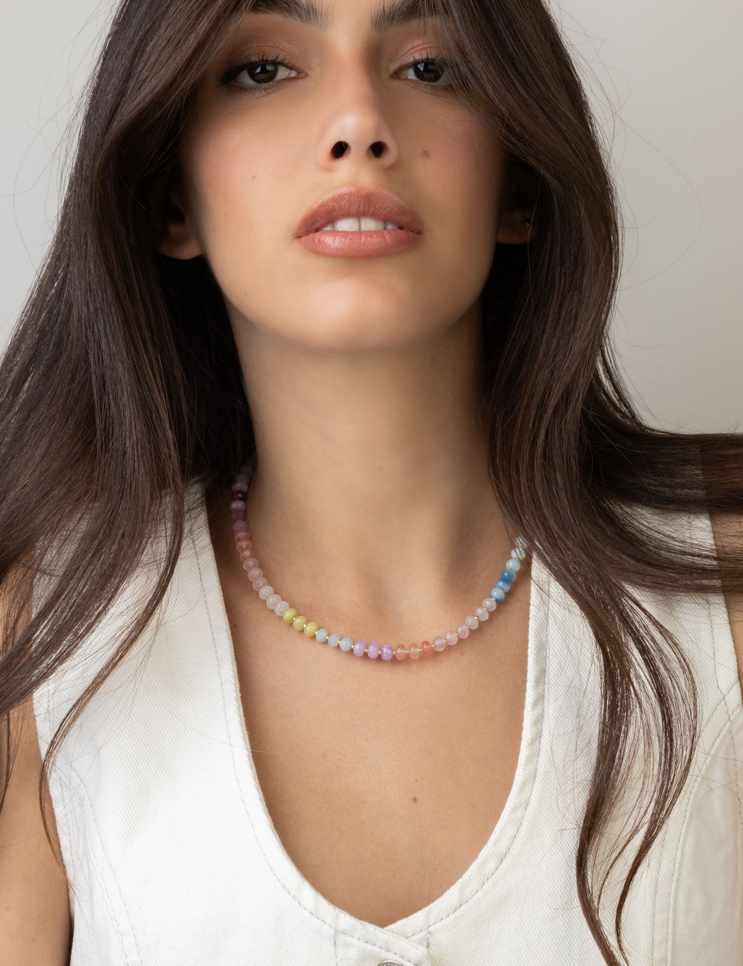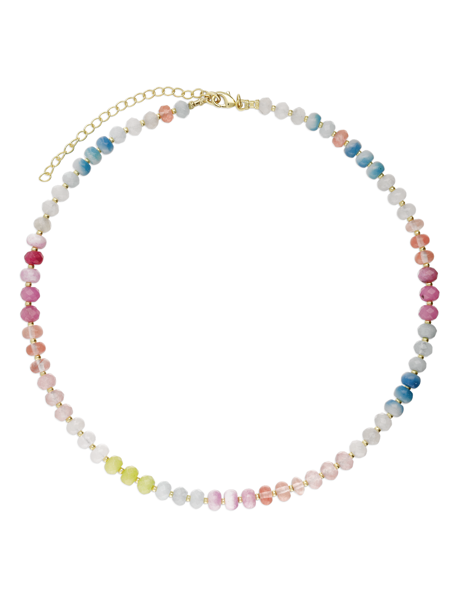 Colar de pedra banhado a ouro com vidro cristal e jadeíte colorido