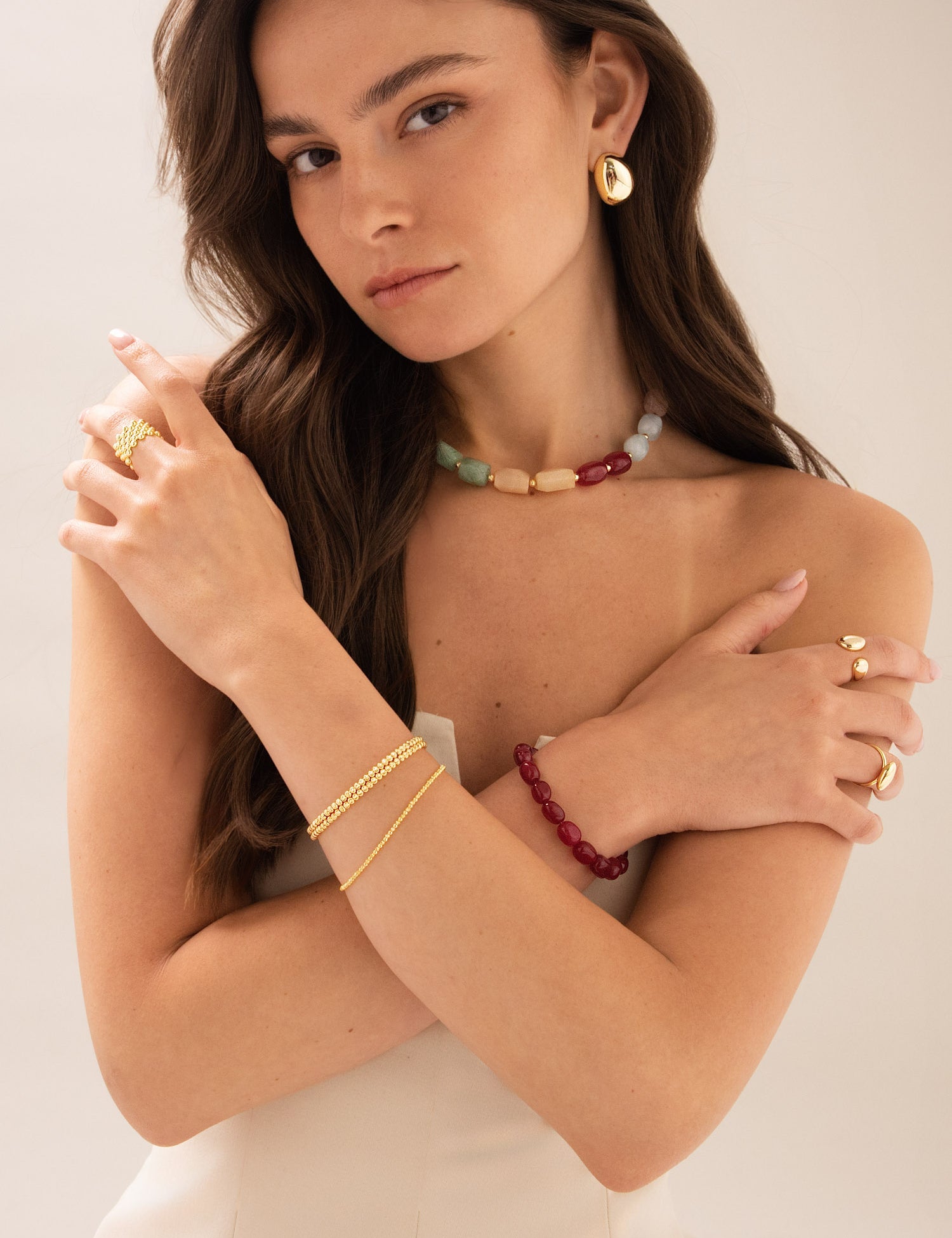 Colar de pedras banhado a ouro com ágata e jadeíte