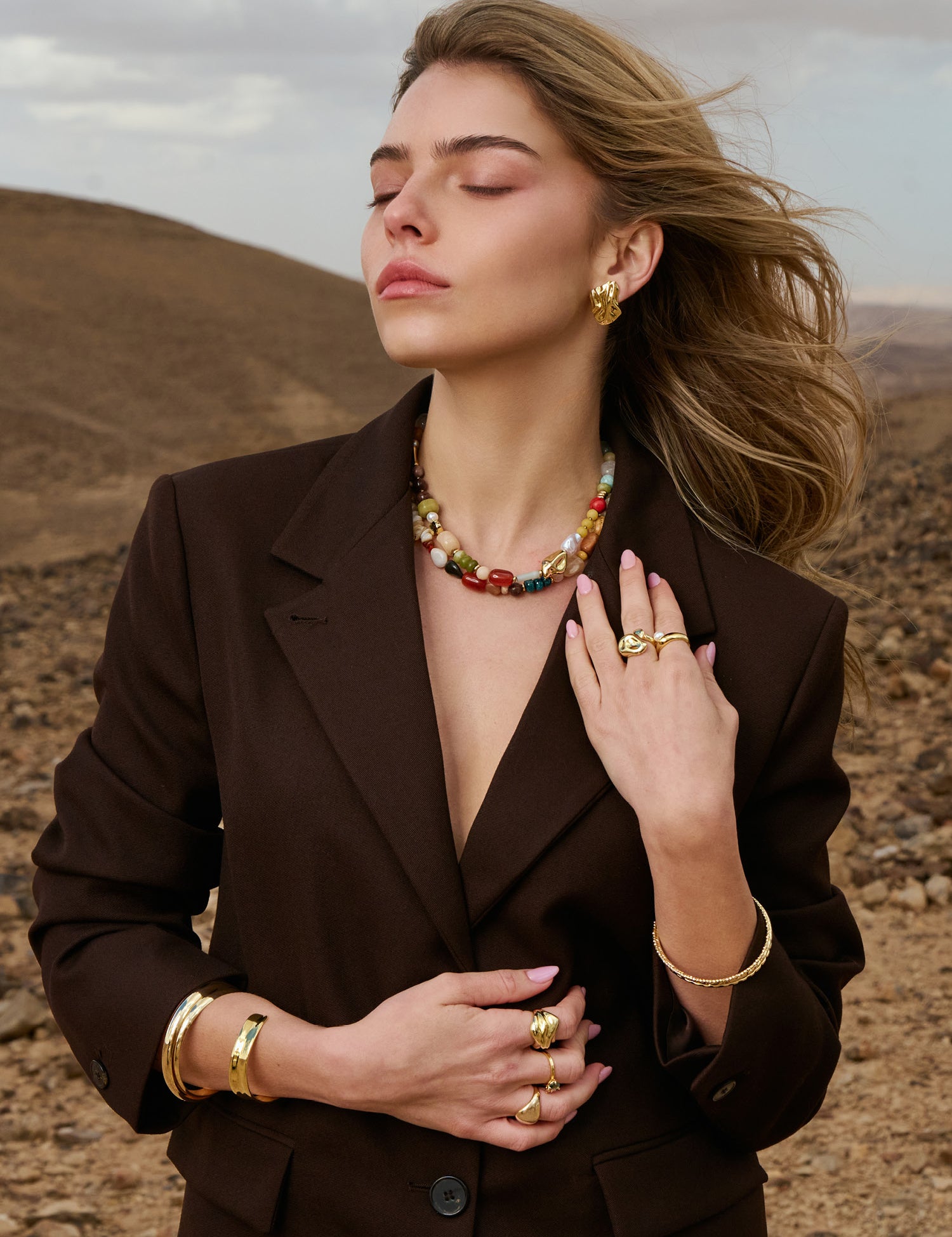 Colar de pedras banhado a ouro com quartzo castanho
