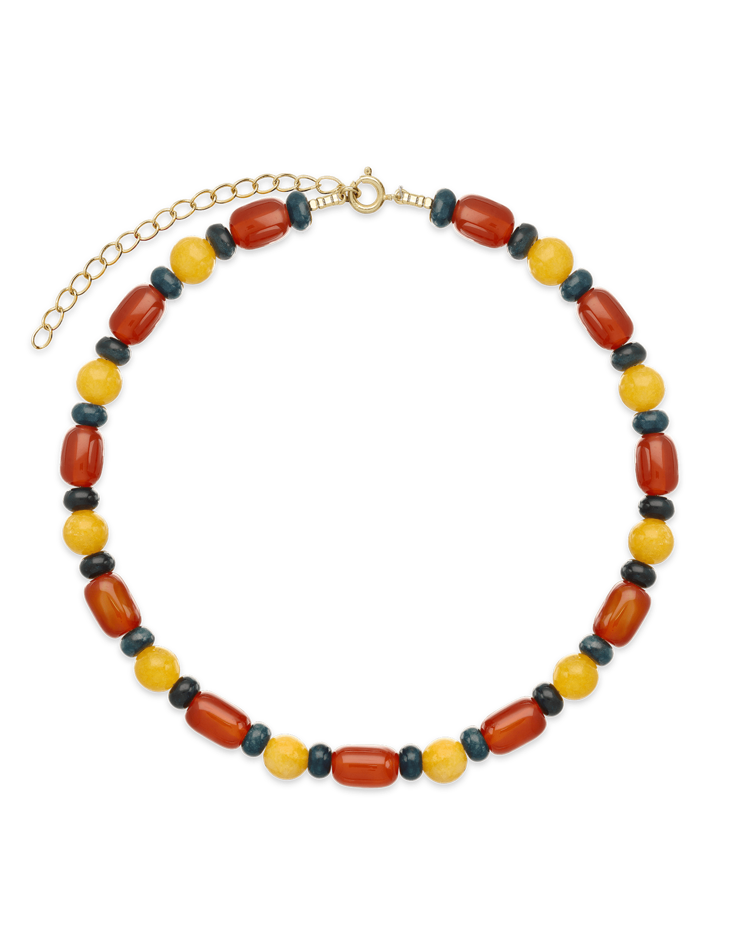 Colar de pedras banhado a Ouro com cornalina , jadeíte e quartzo