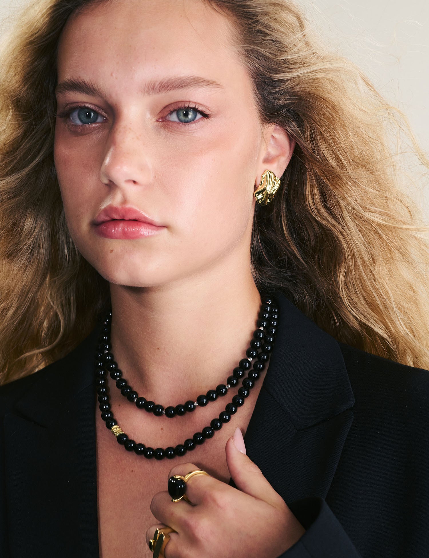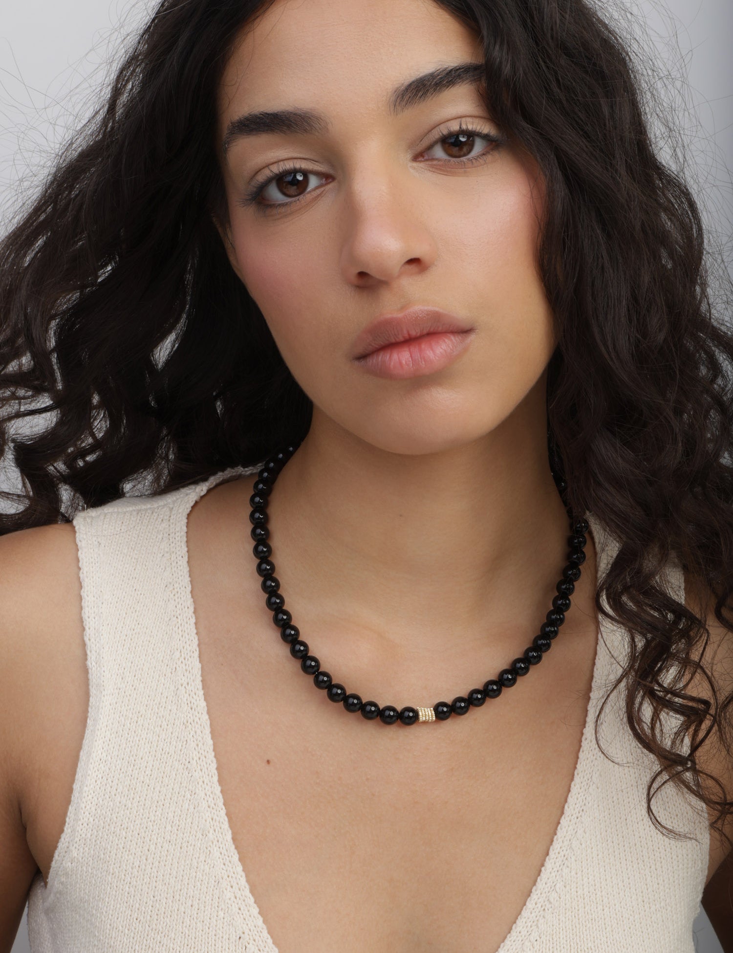 Colar de pedra banhado a ouro com ónix preto