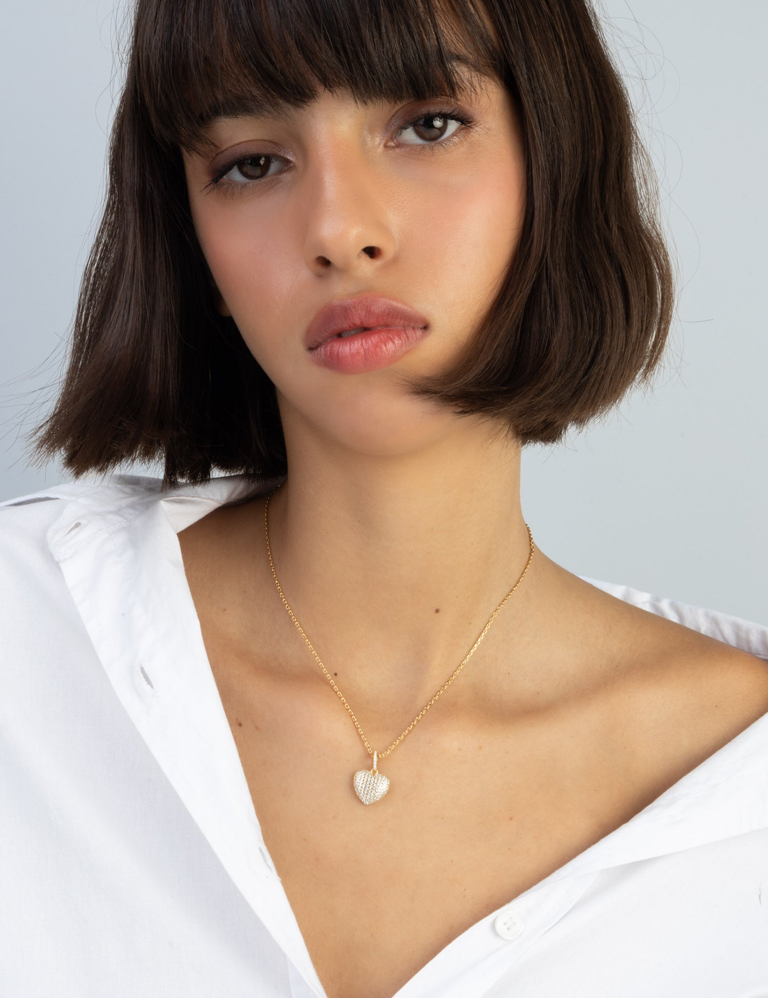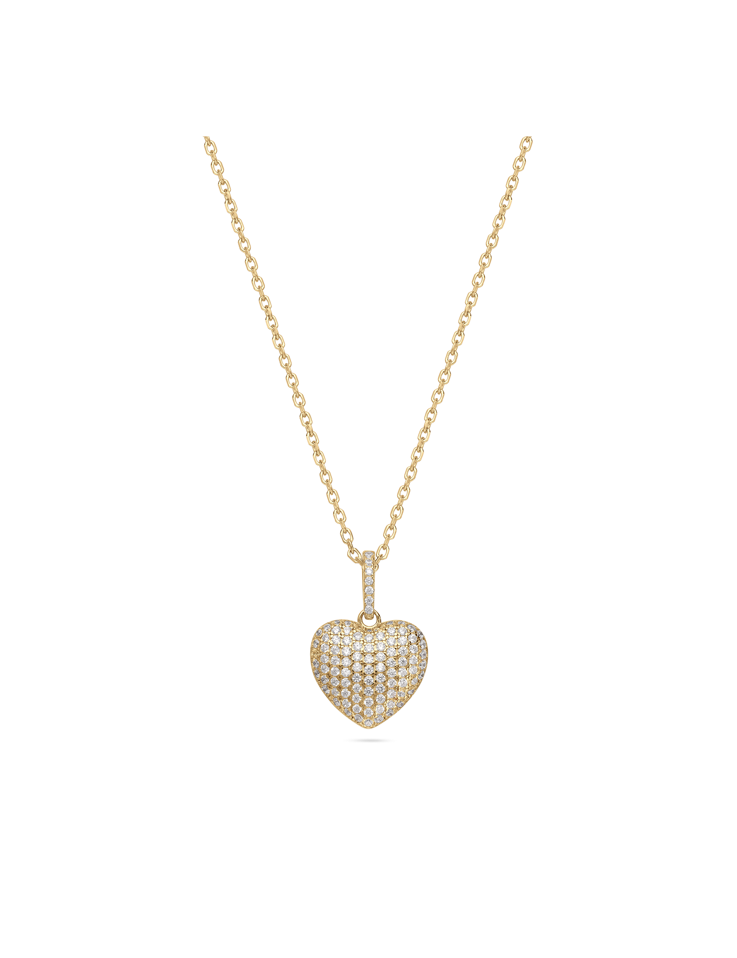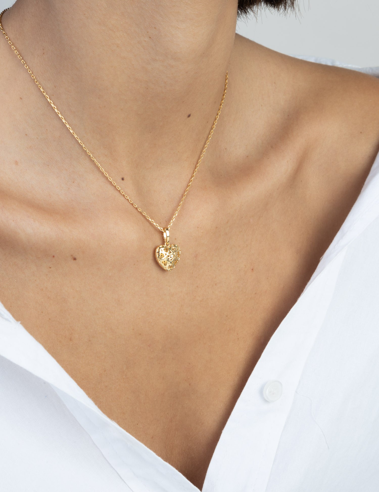 Fio com pendente coração em prata 925 e banhado a ouro com zircónias