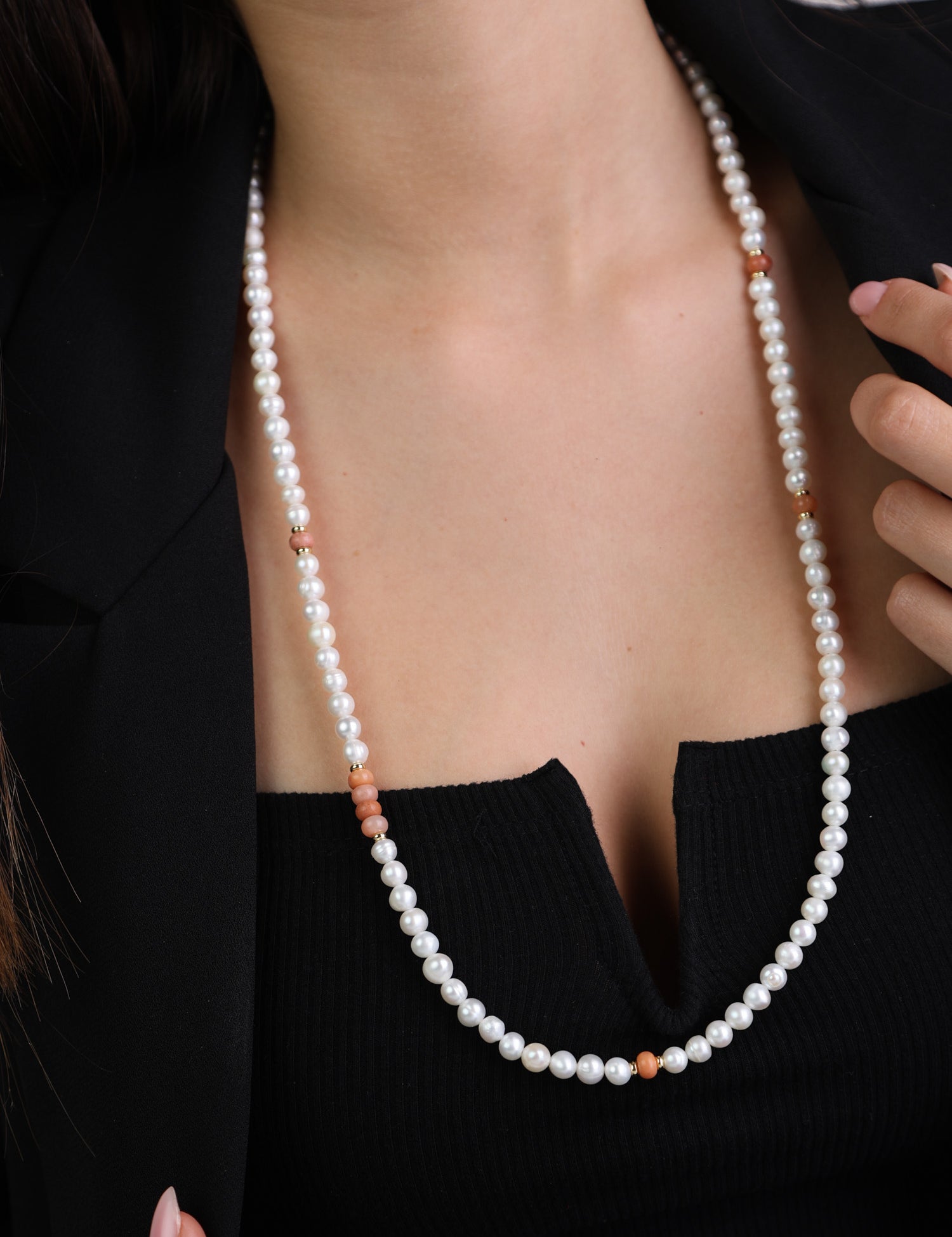 Pulseira de pedras banhada a ouro com coral, pérola, madrepérola, cristal, jadeíte e vidro Murano