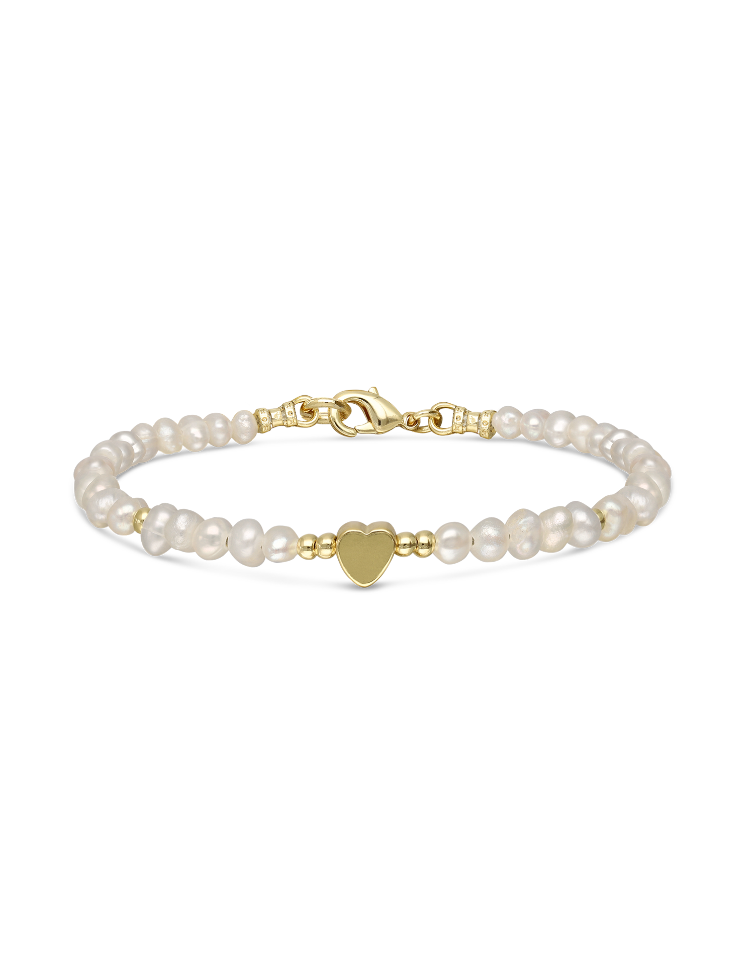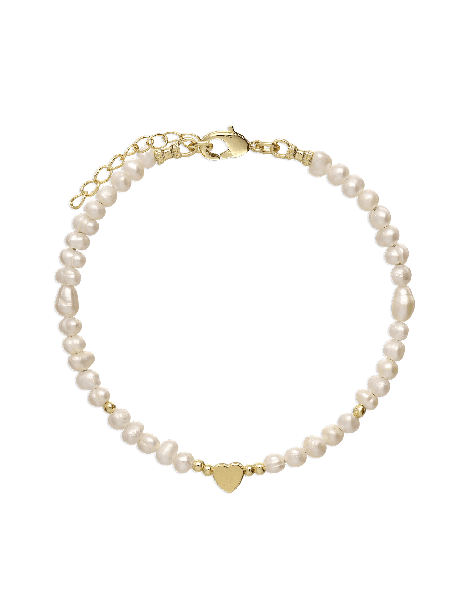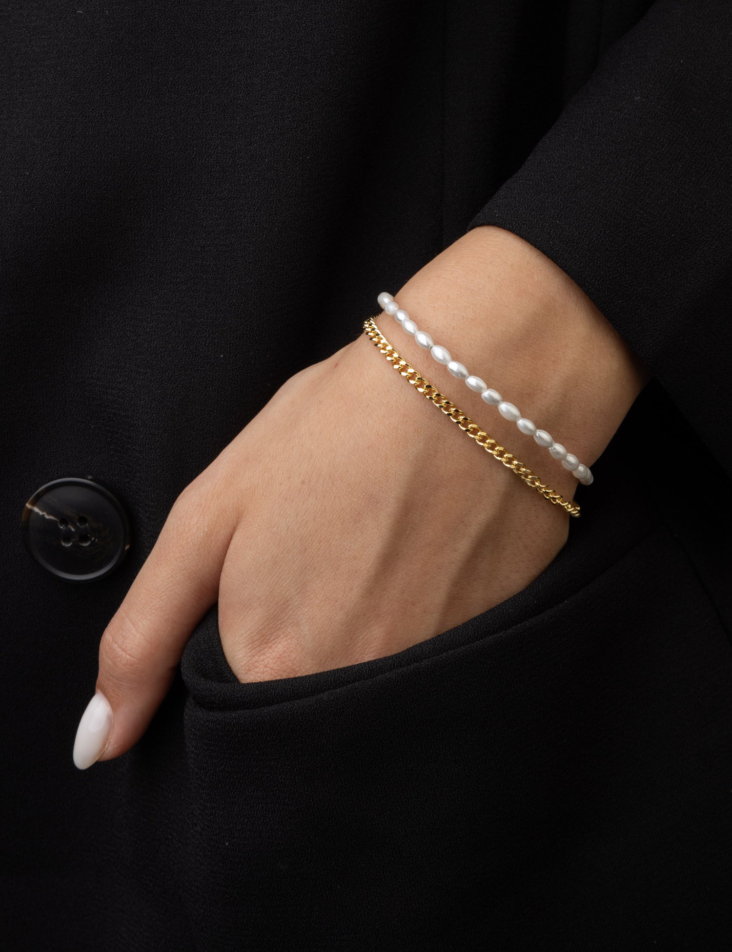 Pulseira delicada banhada a ouro com zircónia, pérola e esmalte branco