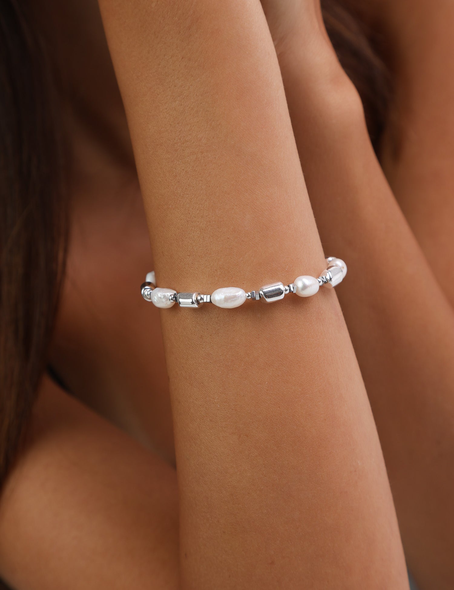 pulseira de pérolas, Prata de lei 925, Pérola cultivada