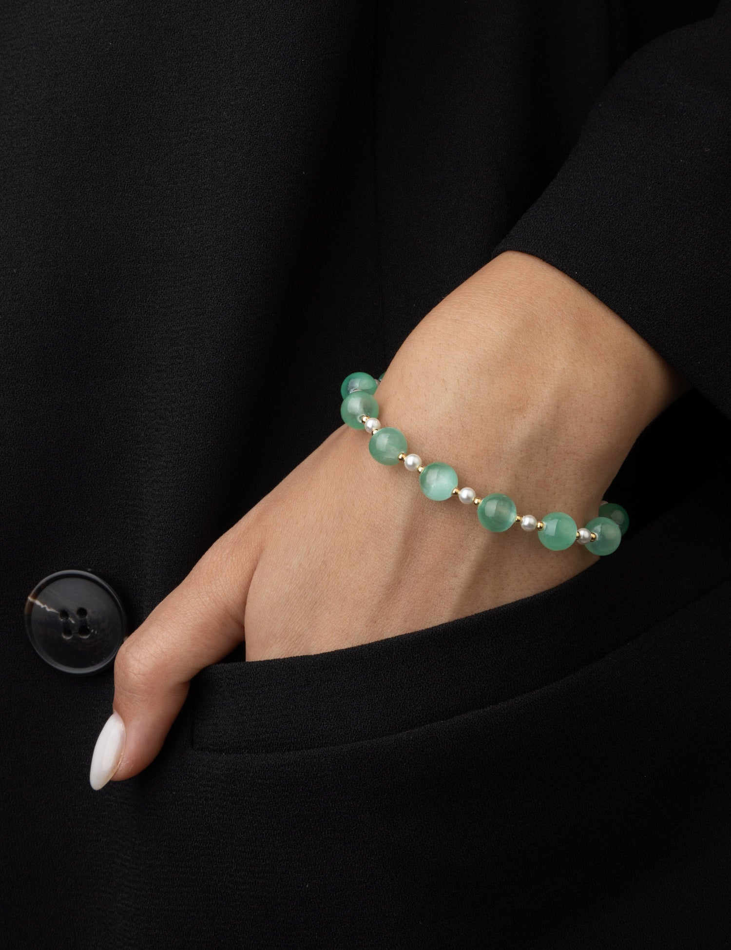 Pulseira banhada a ouro com madrepérola e vidro cristal