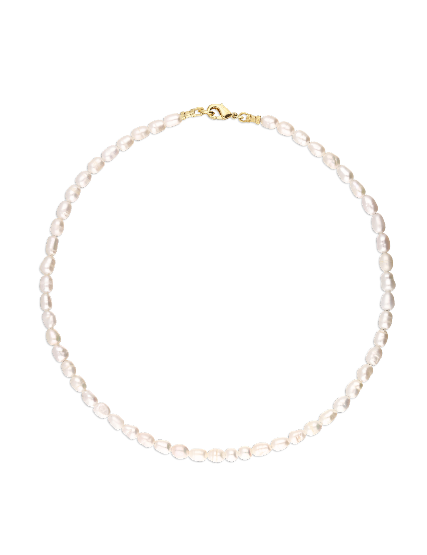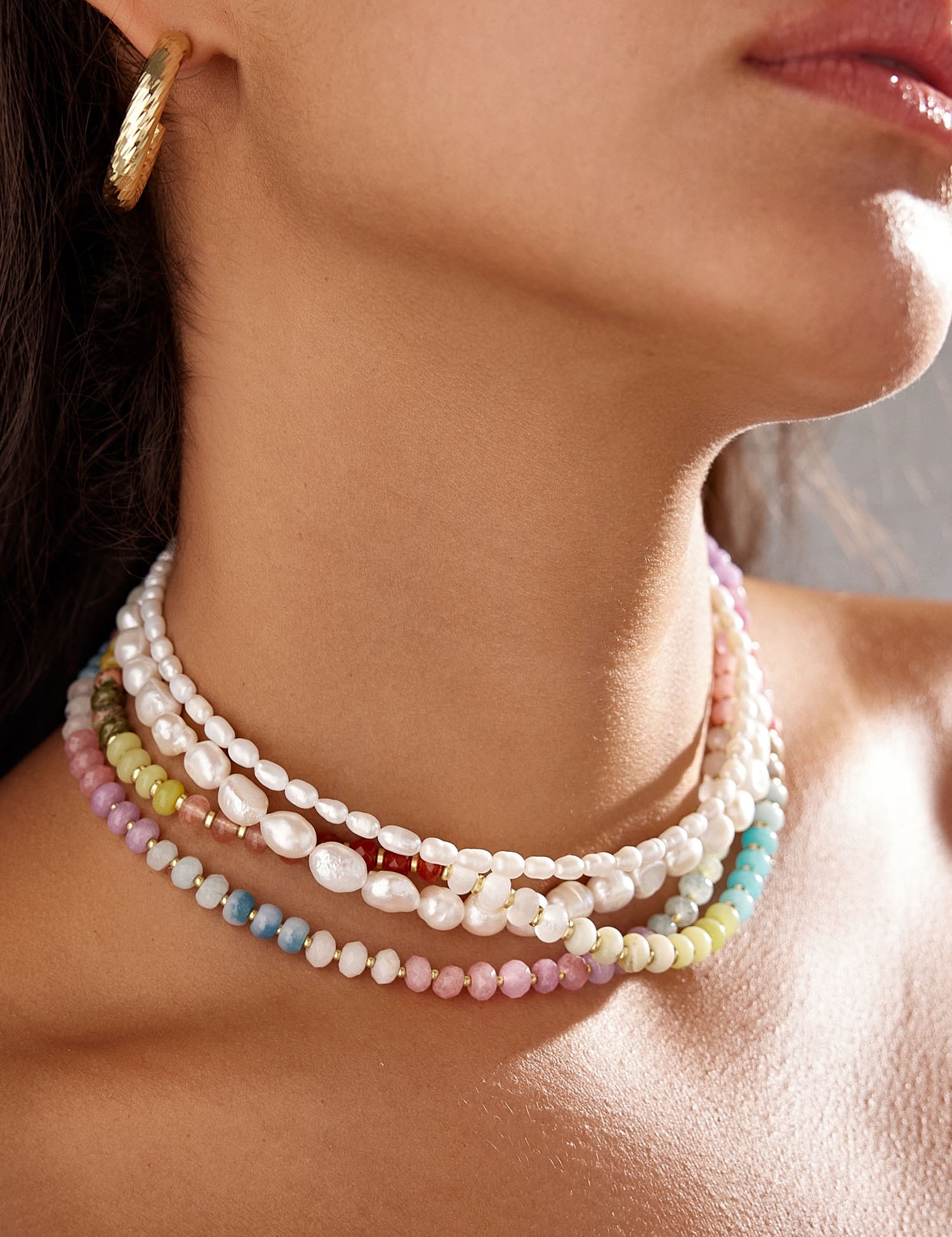 Colar de pedras banhado a ouro com pérolas e jadeíte