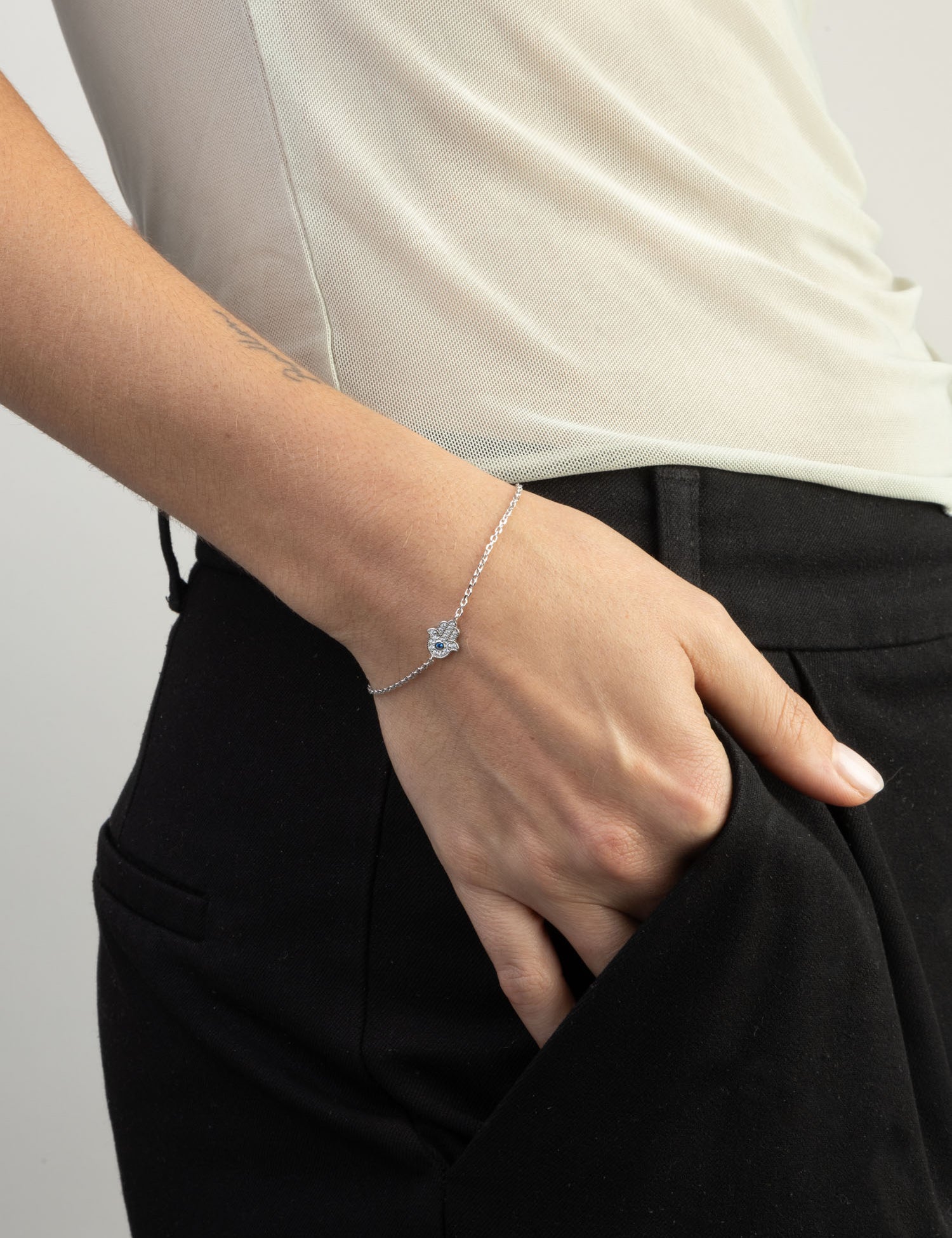 Pulseira Mão de Fátima em prata 925 com zircónia azul