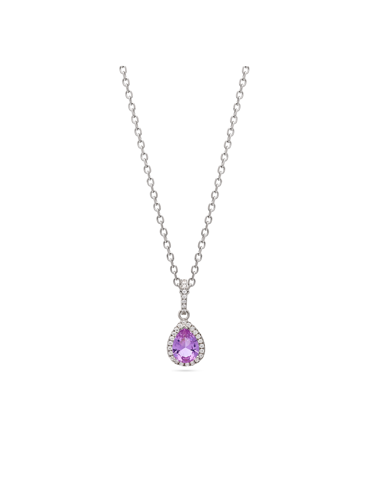 Fio com pendente violeta em prata 925 com zircónias