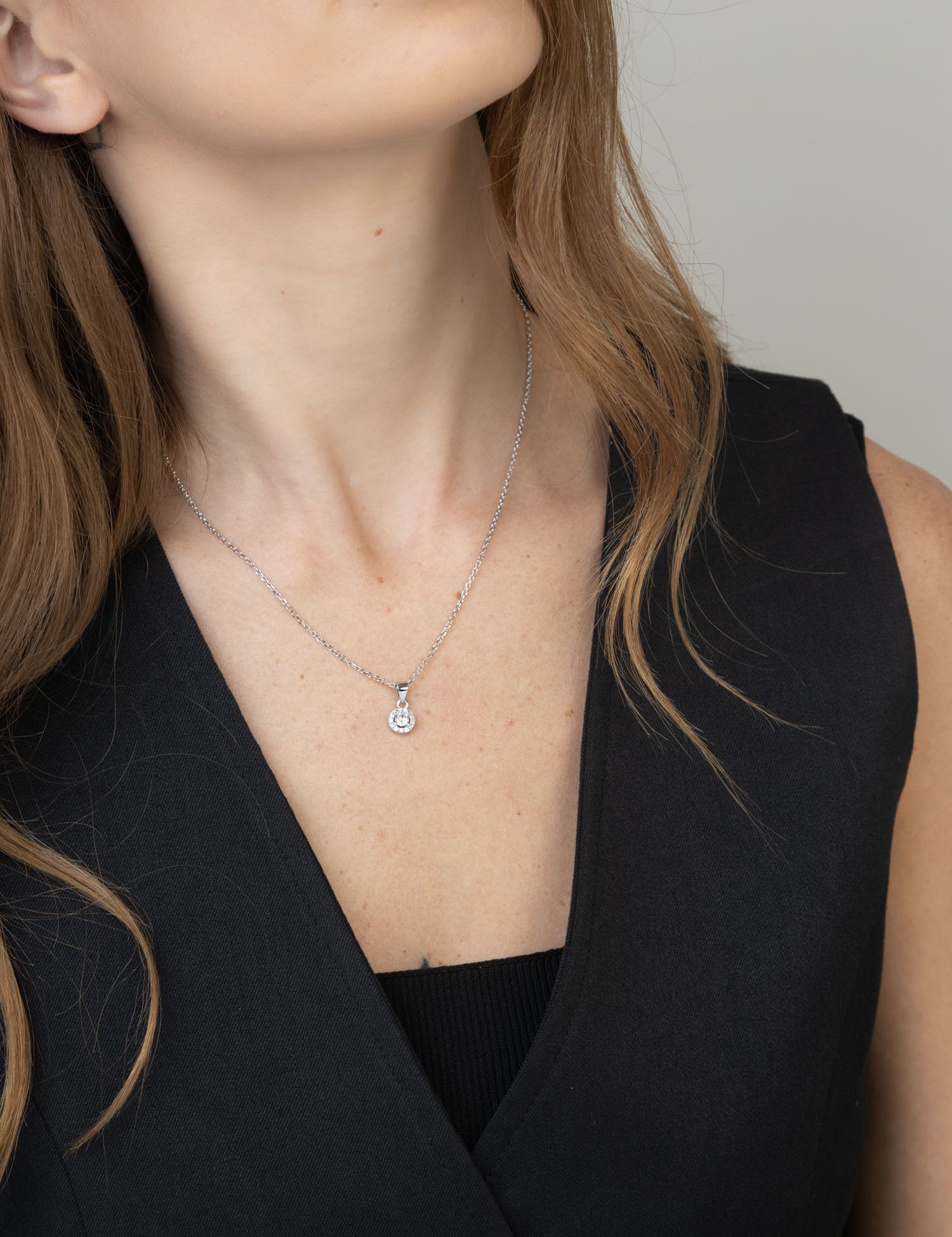 Fio com pendente círculo em prata de lei 925 com zircónias