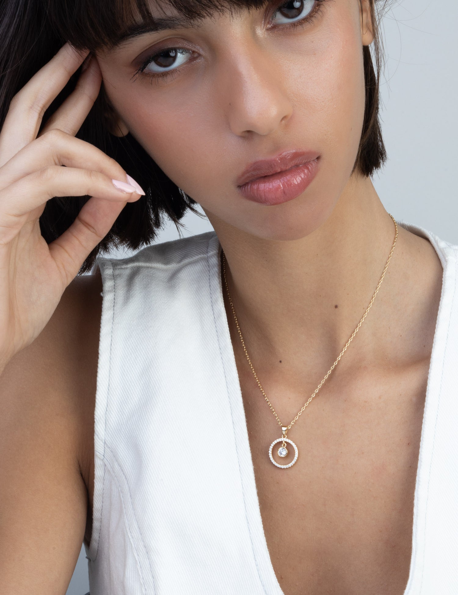 Fio com pendente círculo em prata de lei 925 com zircónias
