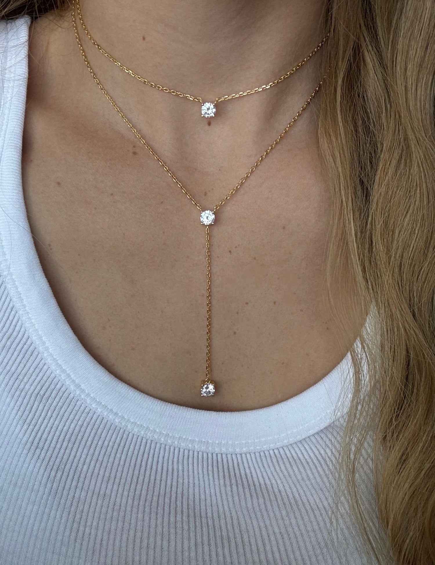 Fio com pendente banhado a ouro com zircónia