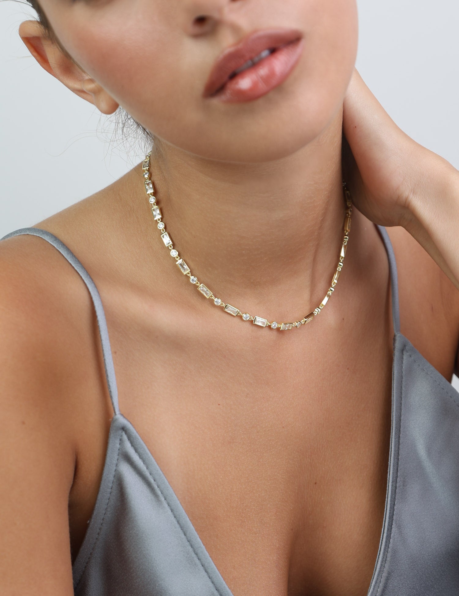 Colar choker banhado a ouro com zircónia e quartzo