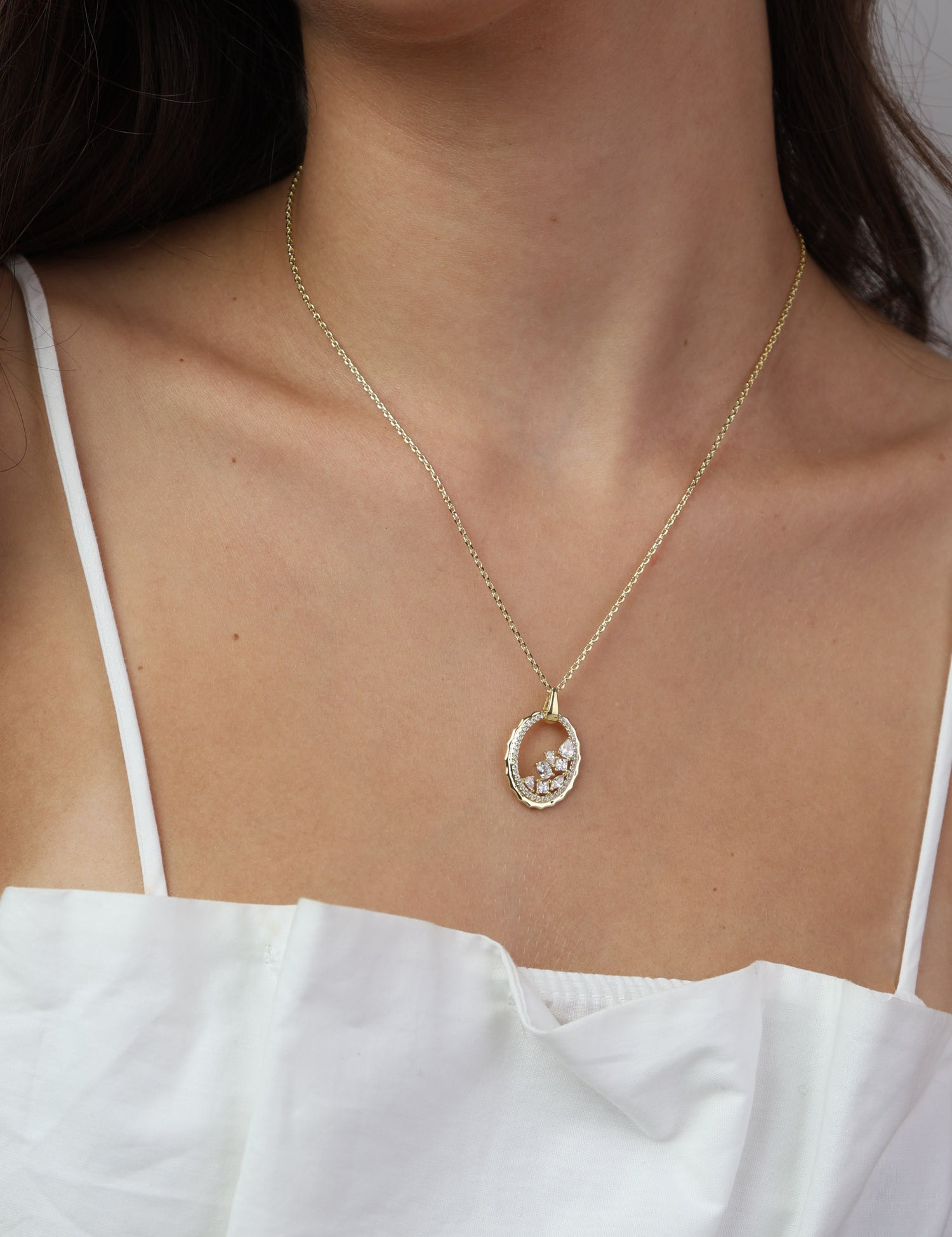 Fio com pendente, Banhado a Ouro, Zircónia de cultivo