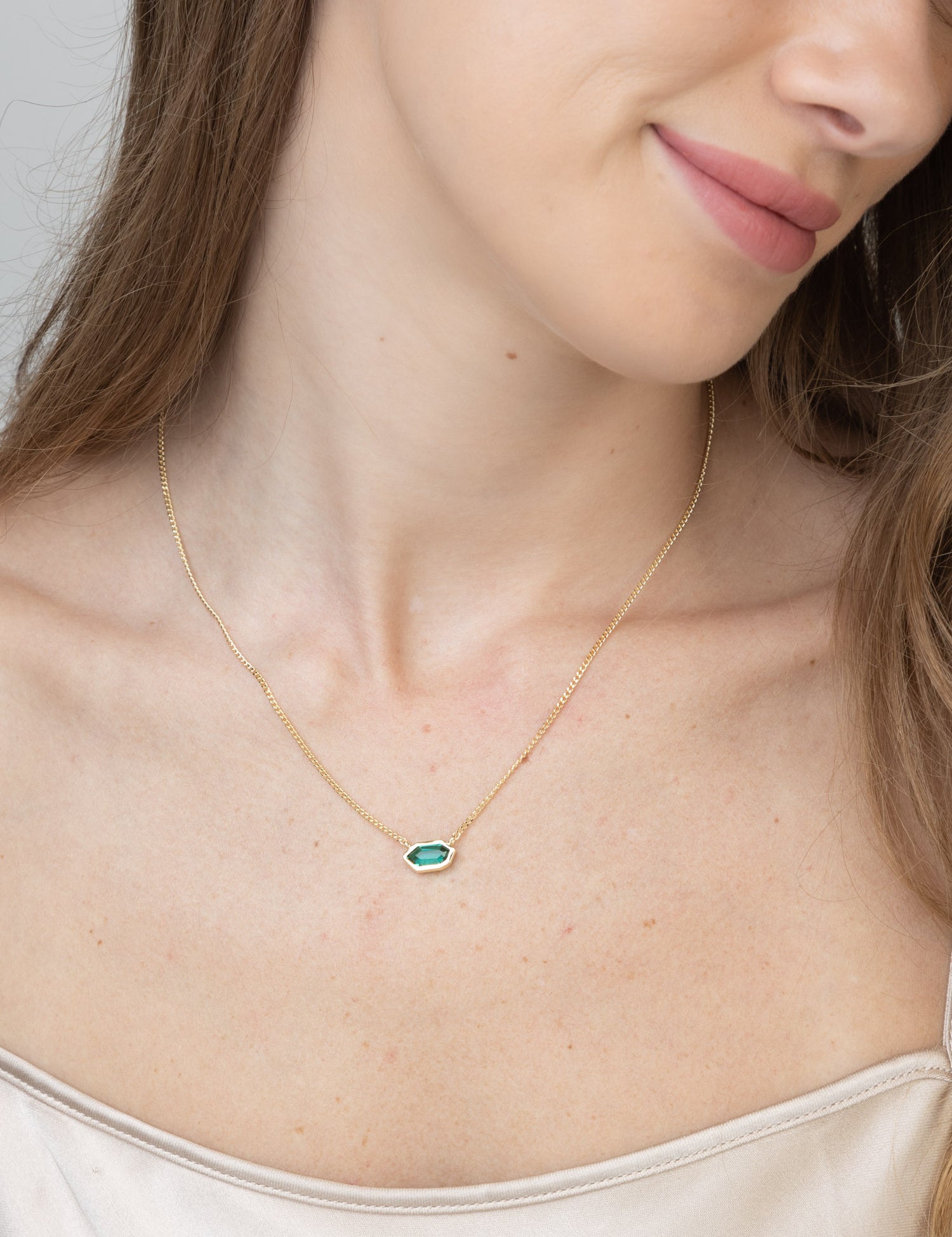 Colar duplo banhado a ouro com pendentes de cristal verde