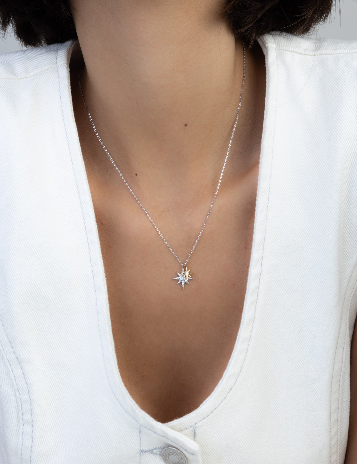 Fio com pendente estrela em prata 925 e banhado a ouro com zircónias