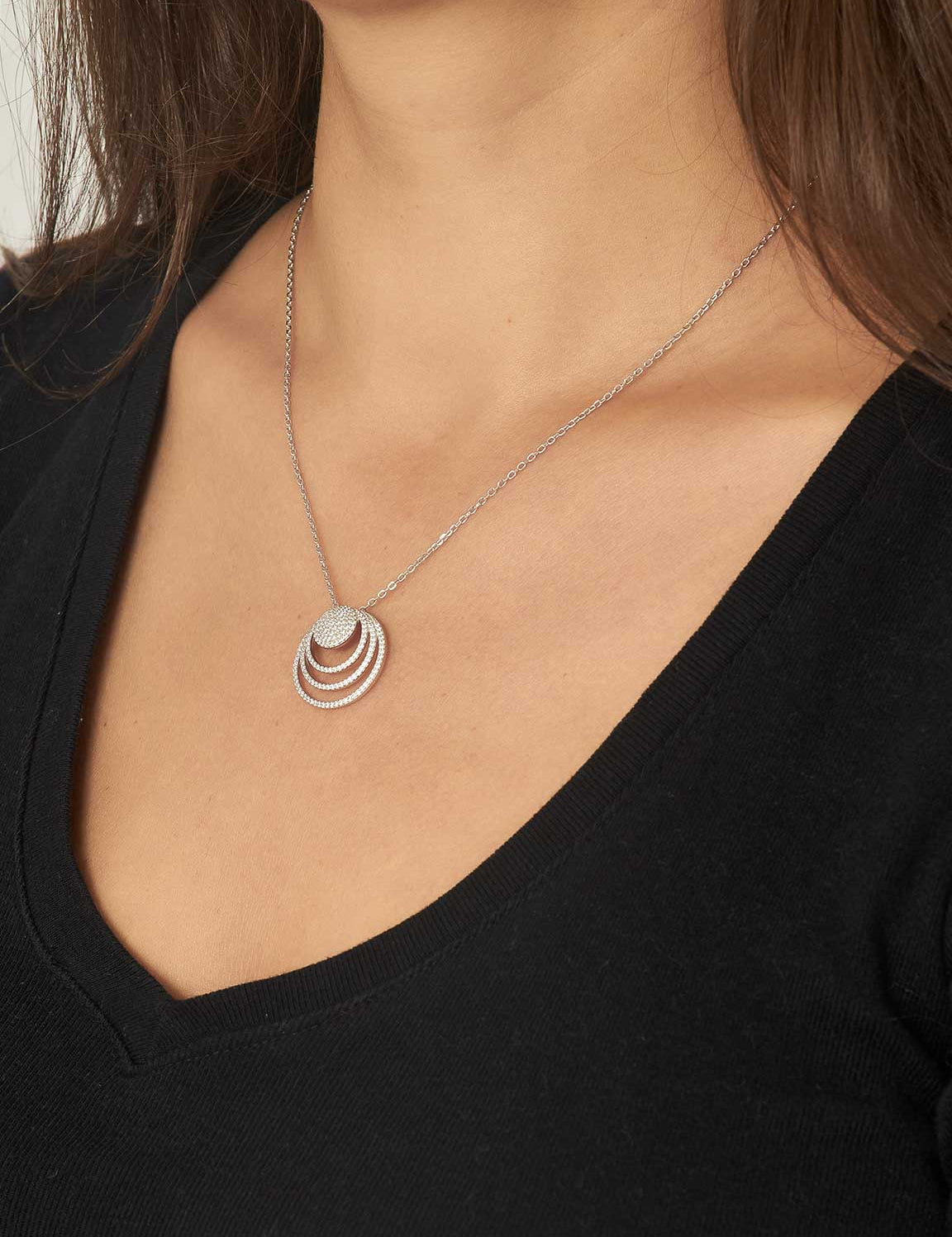 Fio com pendente círculo em prata 925 com zircónias