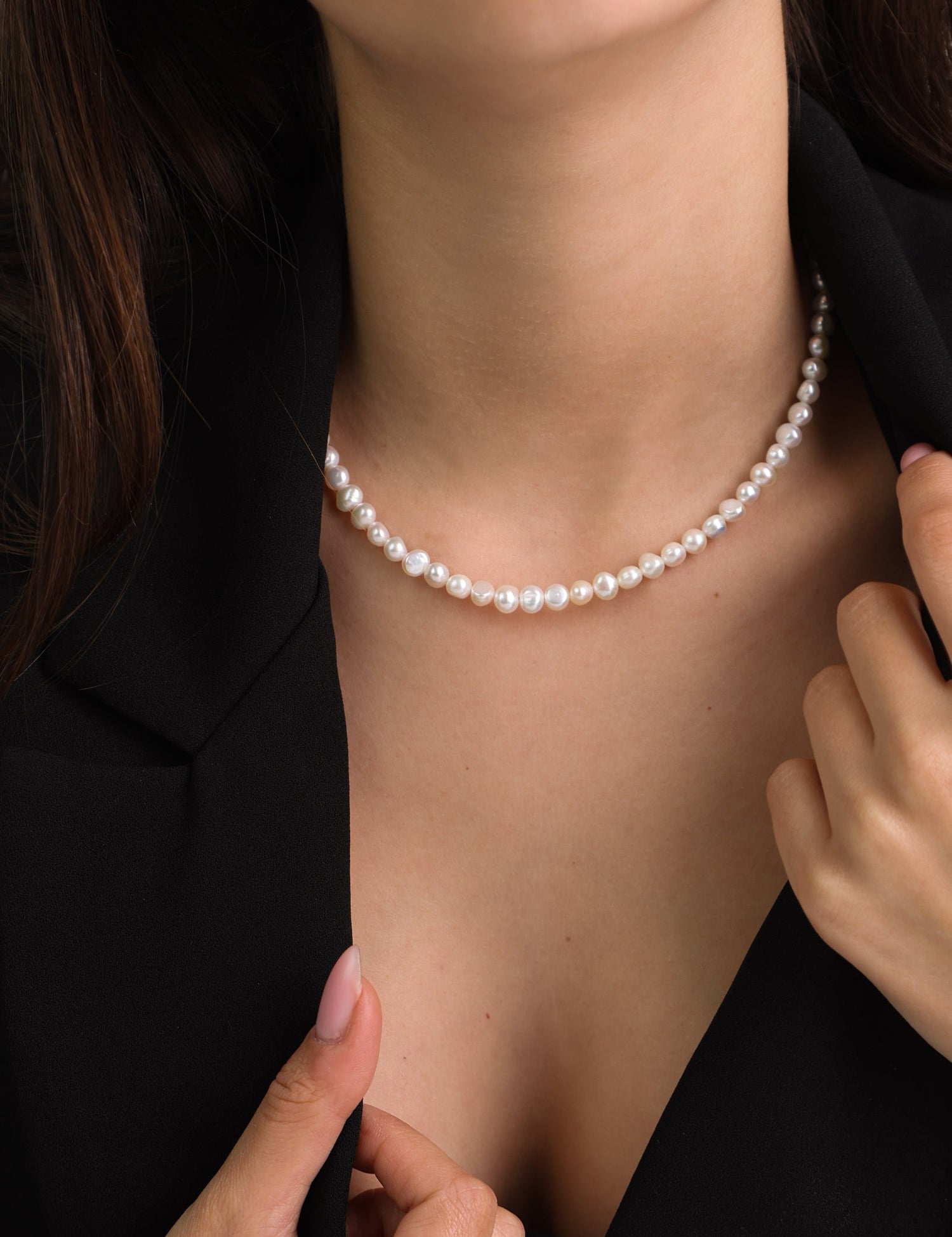Colar choker banhado a ouro com zircónia, pérola e vidro cristal
