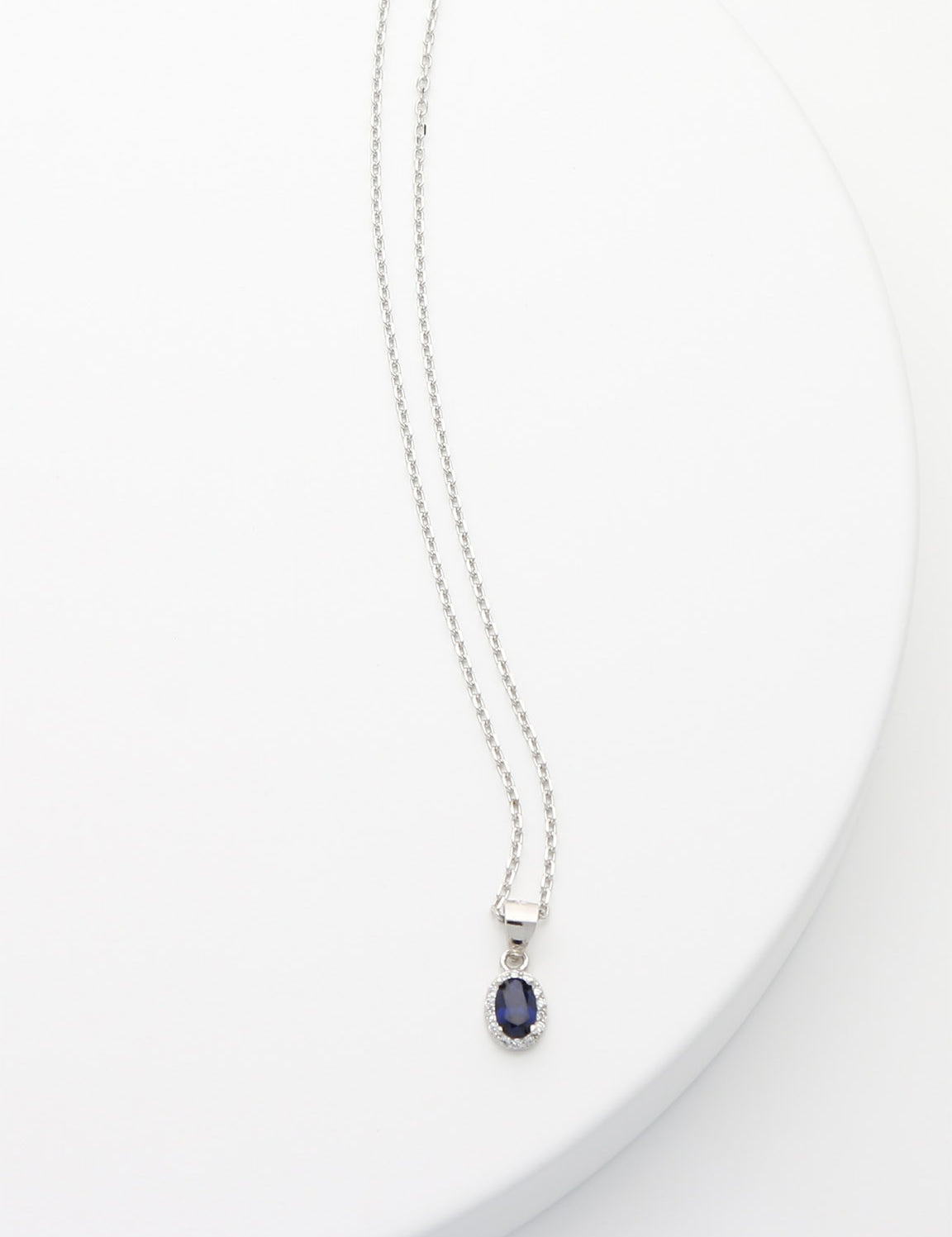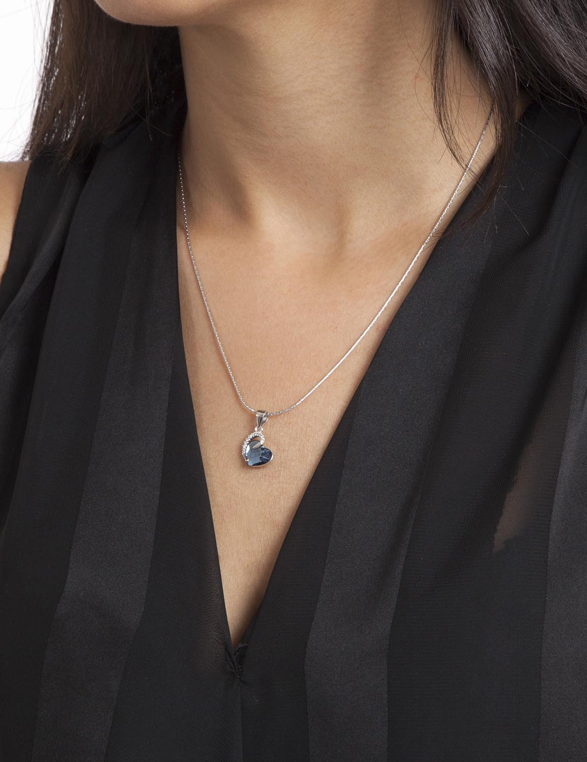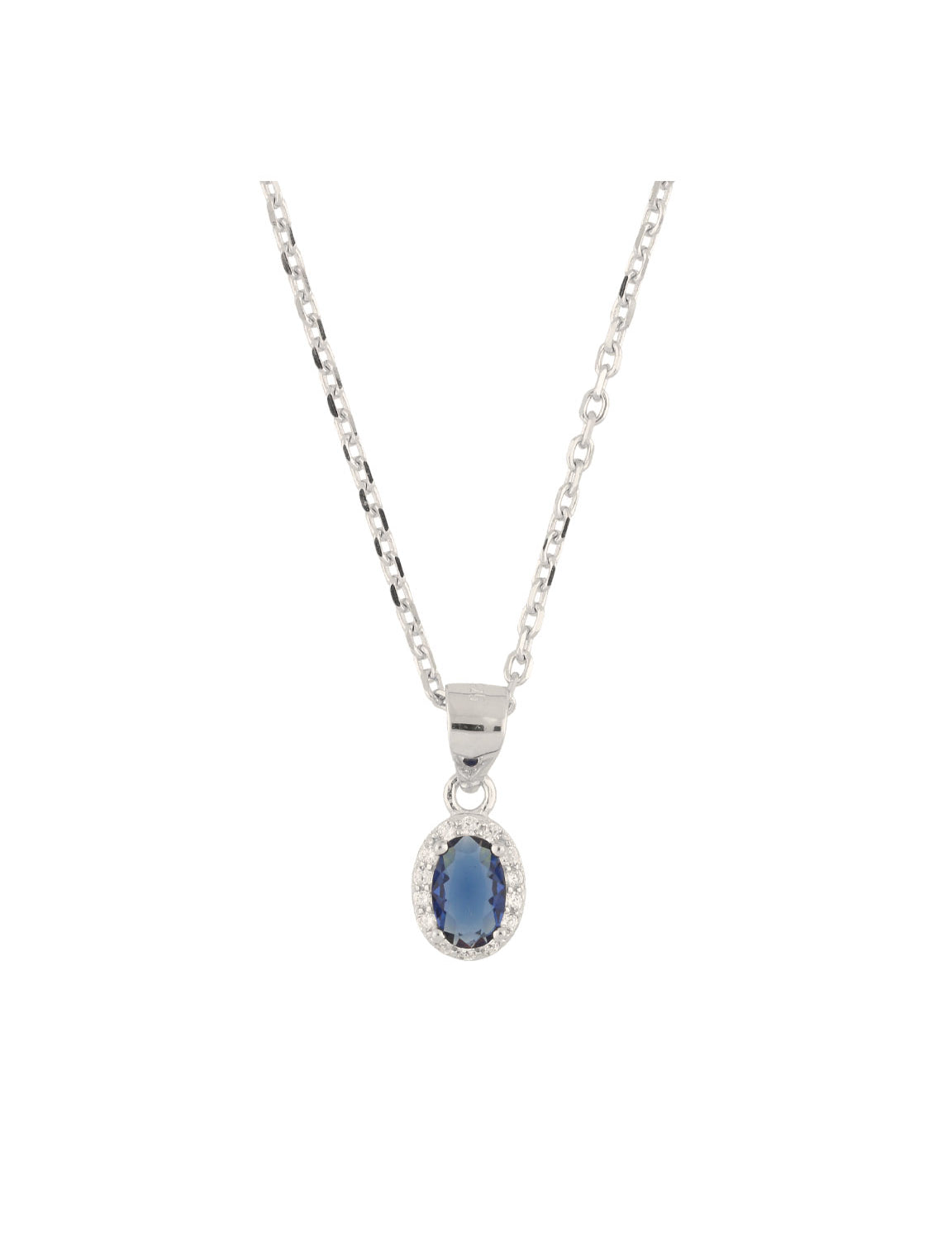 Fio com pendente em prata 925 com zircónia e cristal swarovski azul
