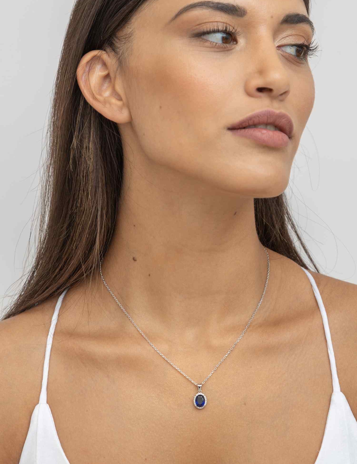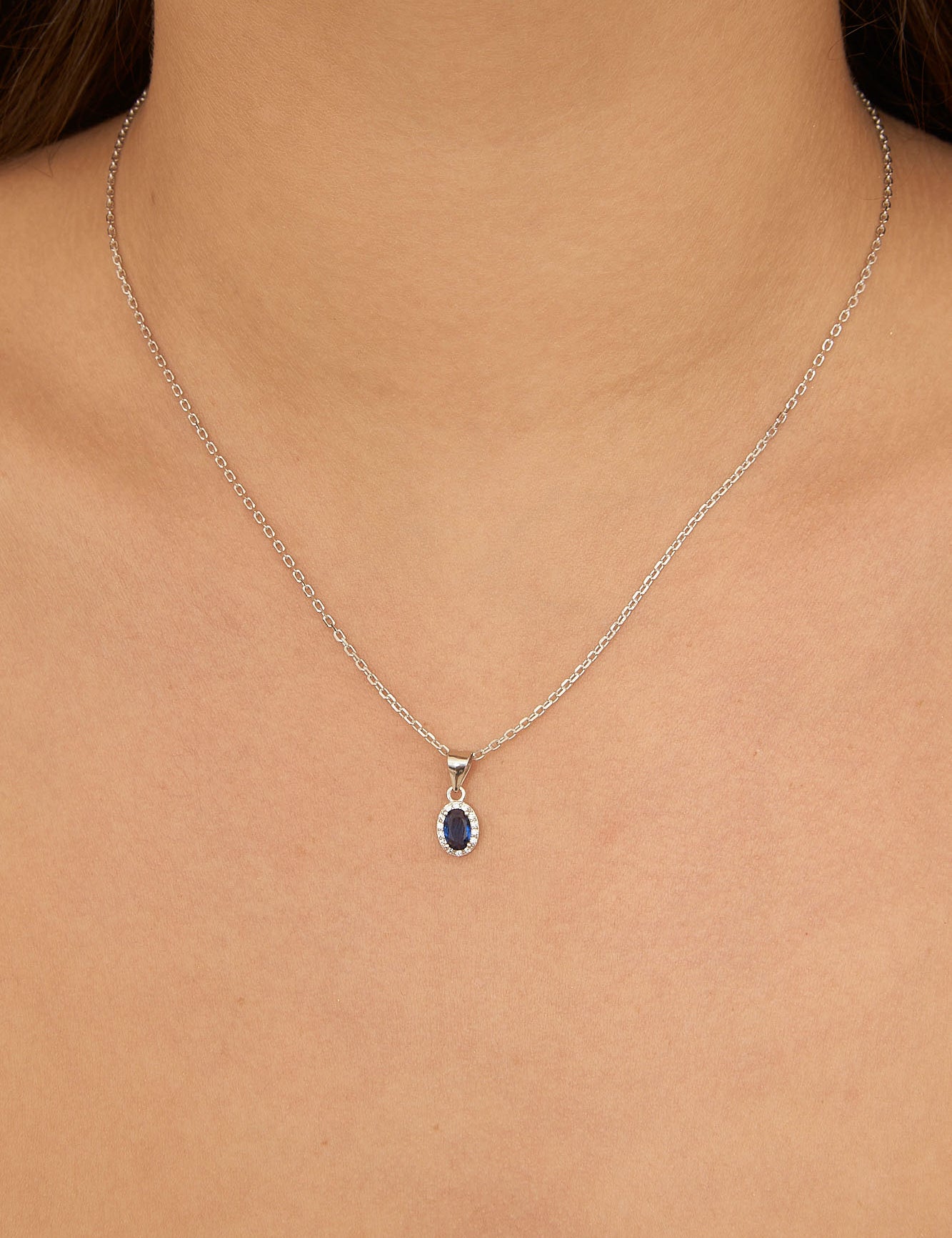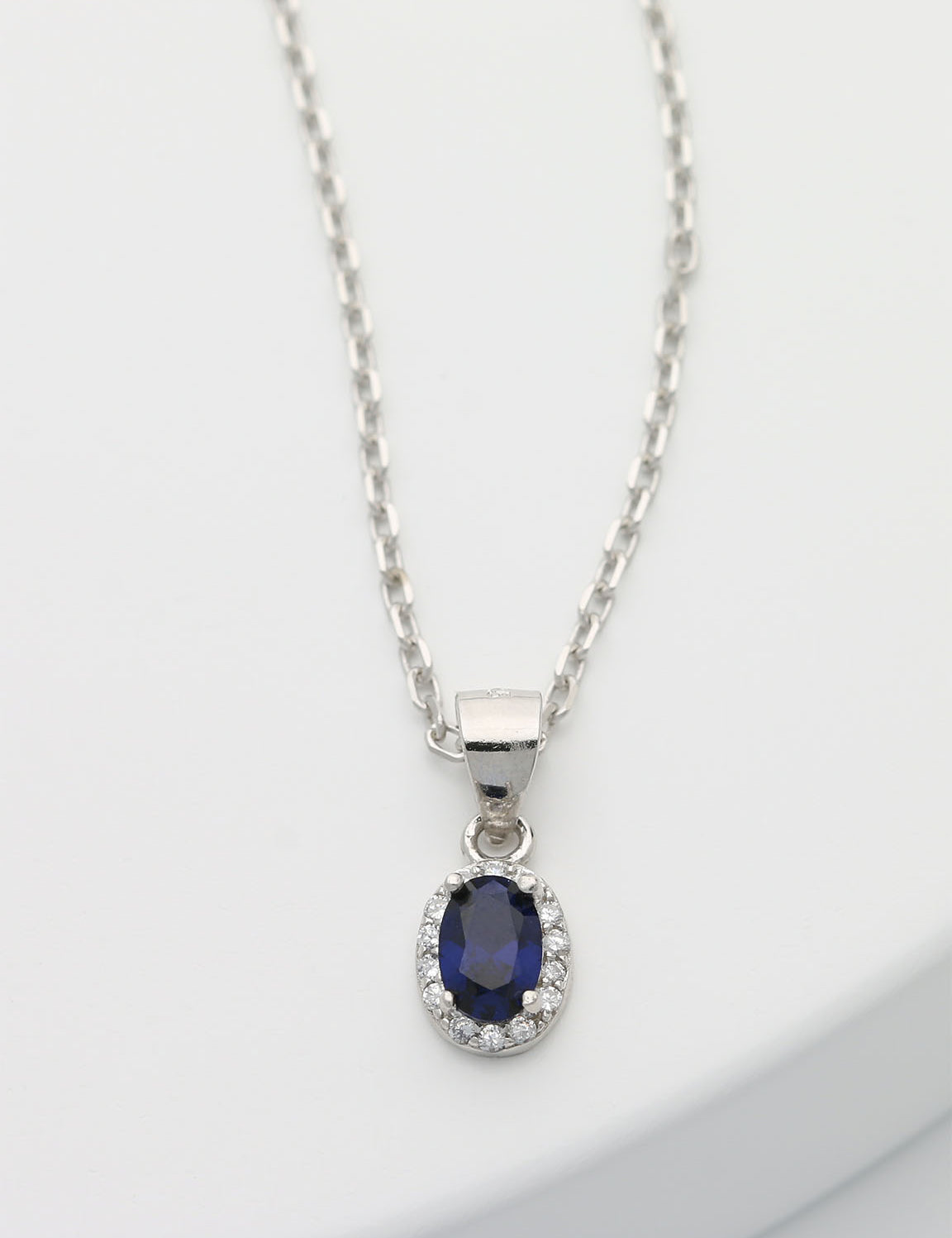Fio com pendente em prata 925 com zircónia e cristal swarovski azul