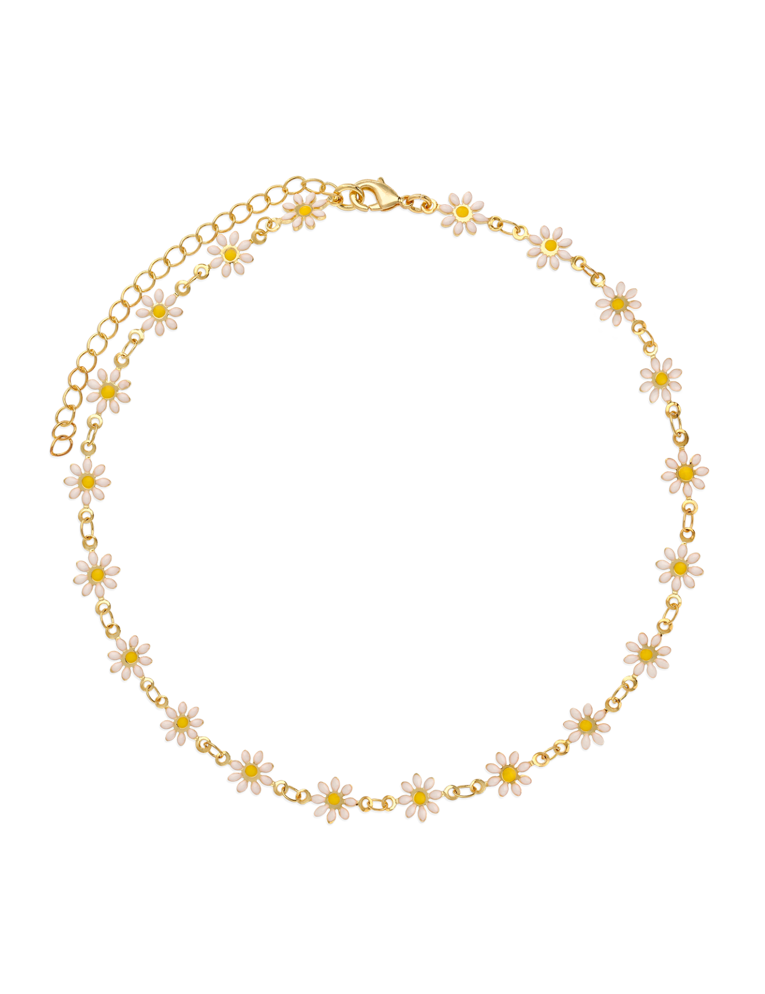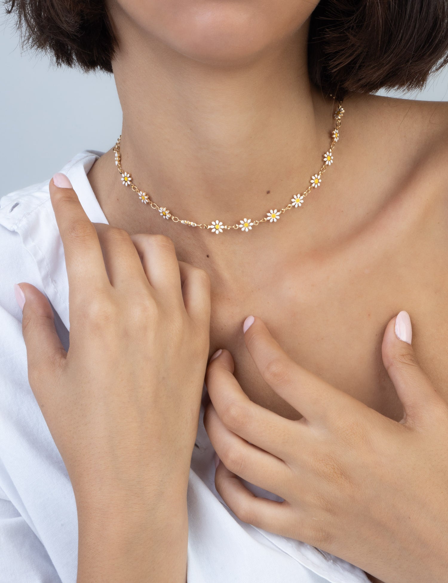 Colar de pedras banhado a ouro com madrepérola e pendente flor