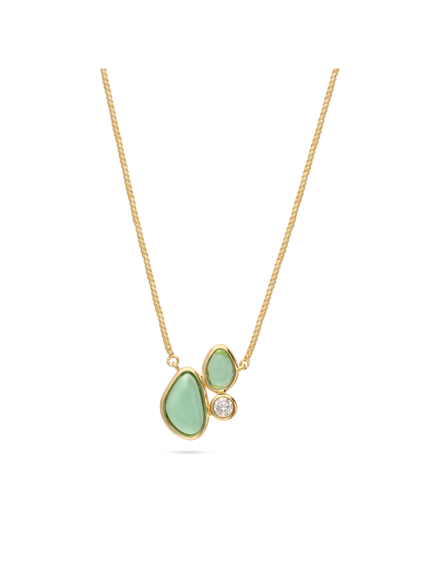 Fio com pendente banhado a ouro com zircónia e cristal verde