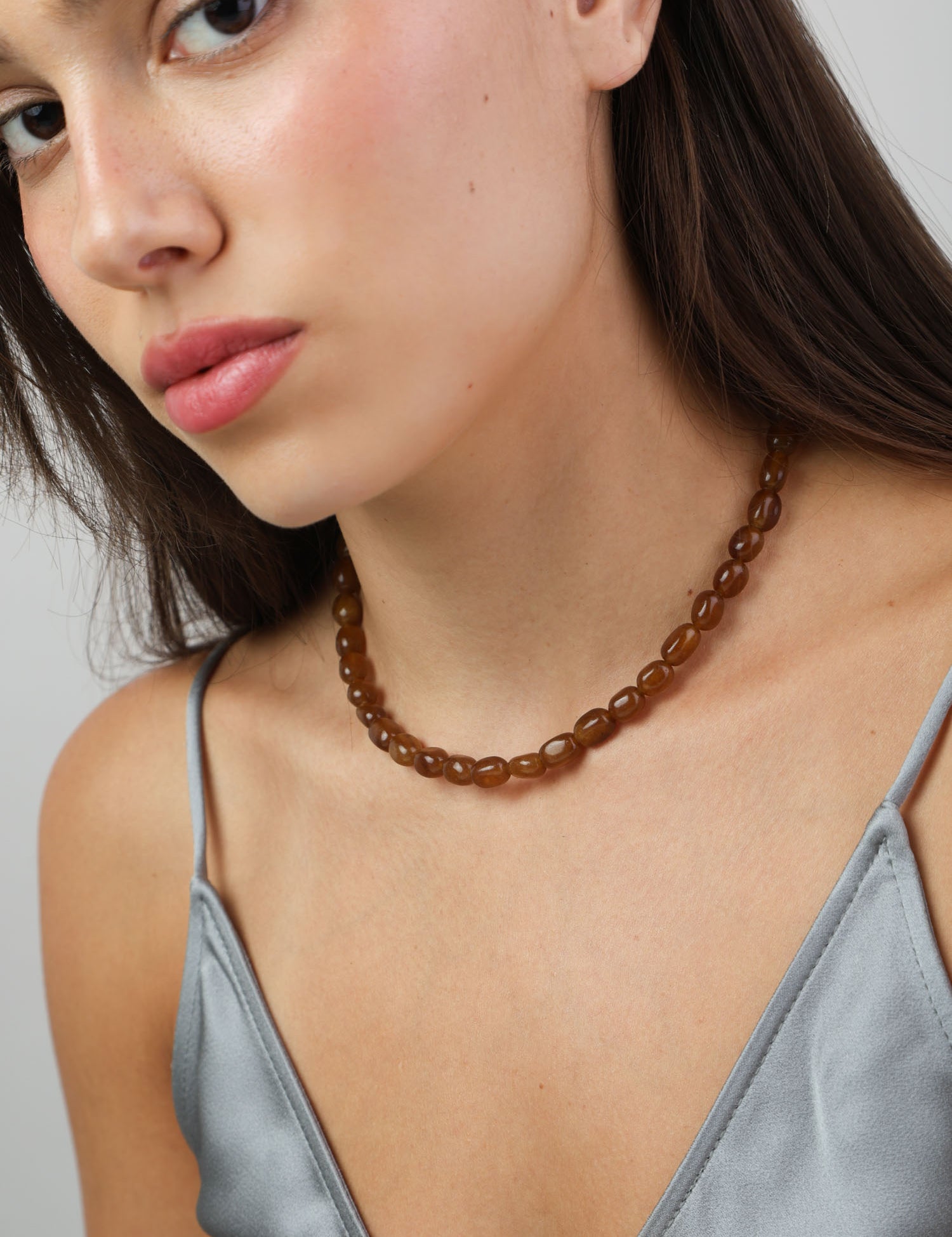 Colar de pedras banhado a ouro com zircónia e cristal castanho