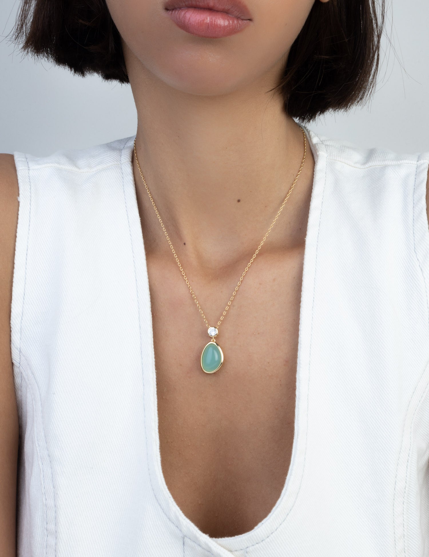 Fio com pendente banhado a ouro com zircónia e calcedónia