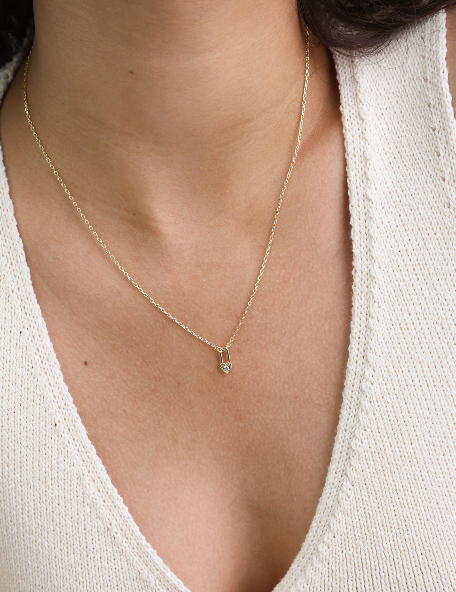Fio com pendente coração banhado a ouro com zircónias