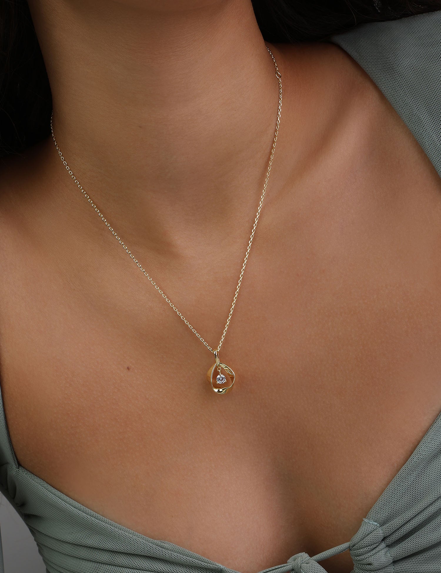 Fio com pendente banhado a ouro com zircónia verde