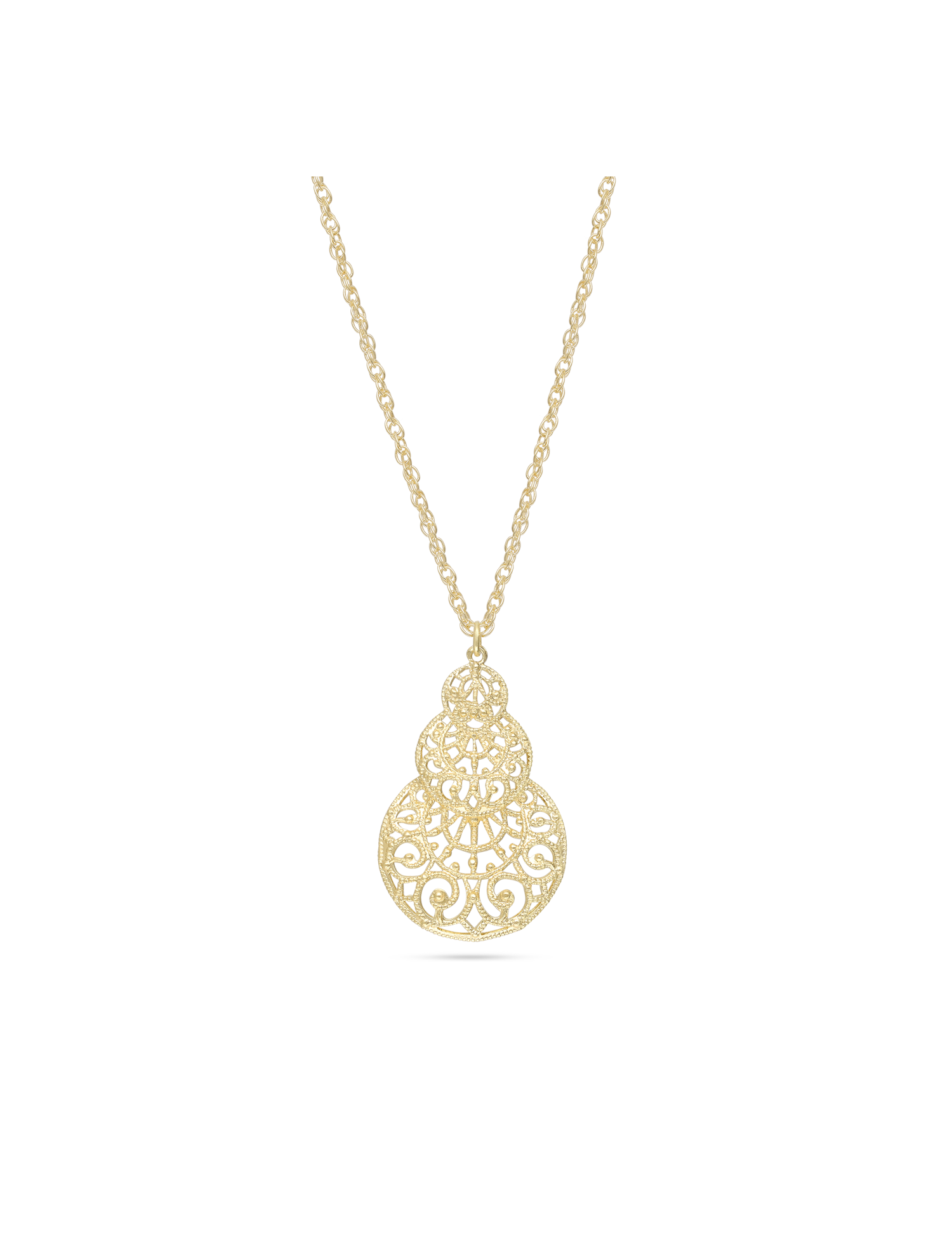 Colar de pedra banhado a ouro com zircónia, pérola e turquesa