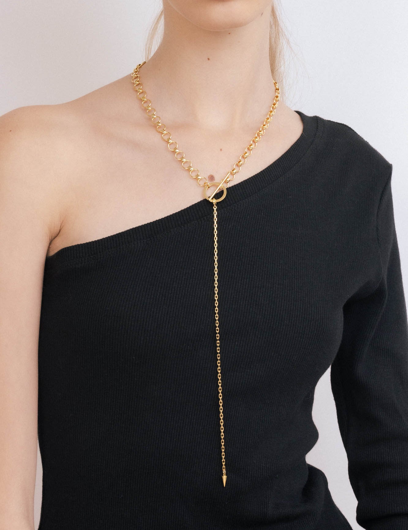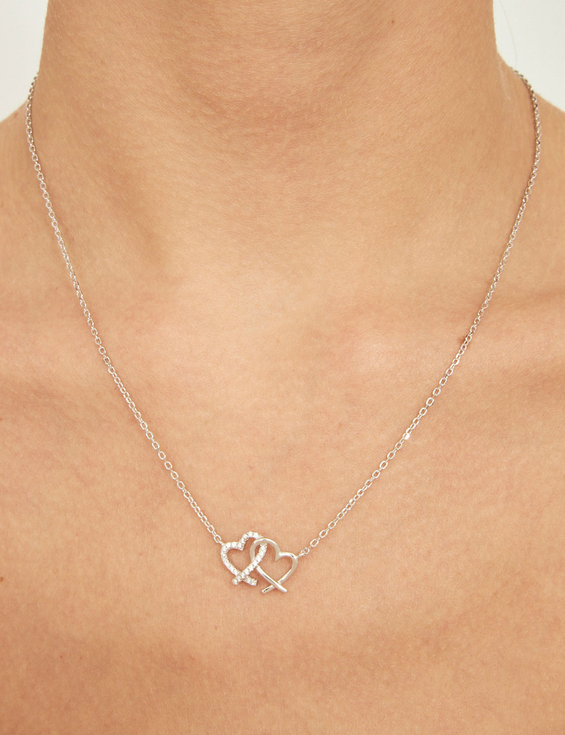 Fio com pendente coração em prata 925 e banhado a ouro com zircónias