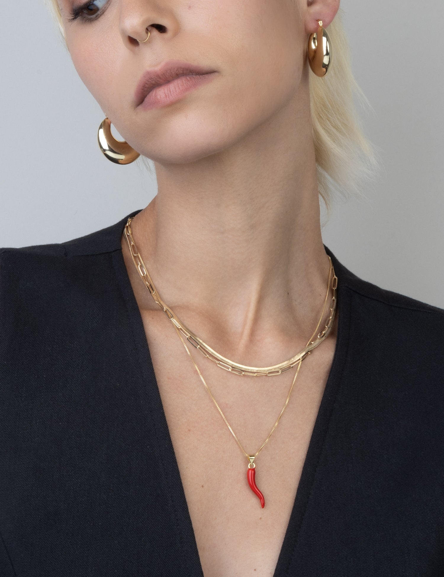 Fio com pendente malagueta banhado a ouro com esmalte vermelho