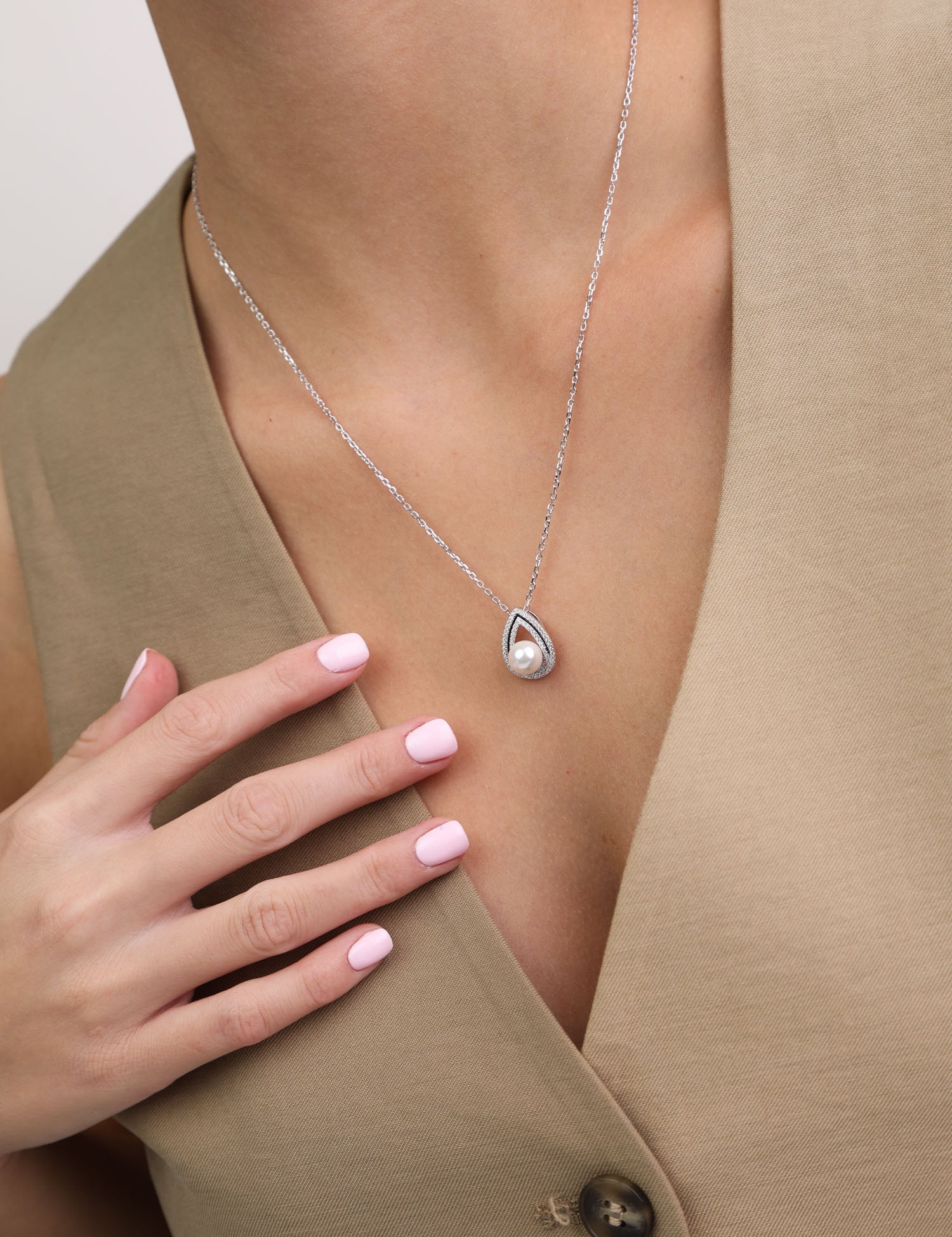 Fio com pendente, Prata de lei 925, Pérola cultivada