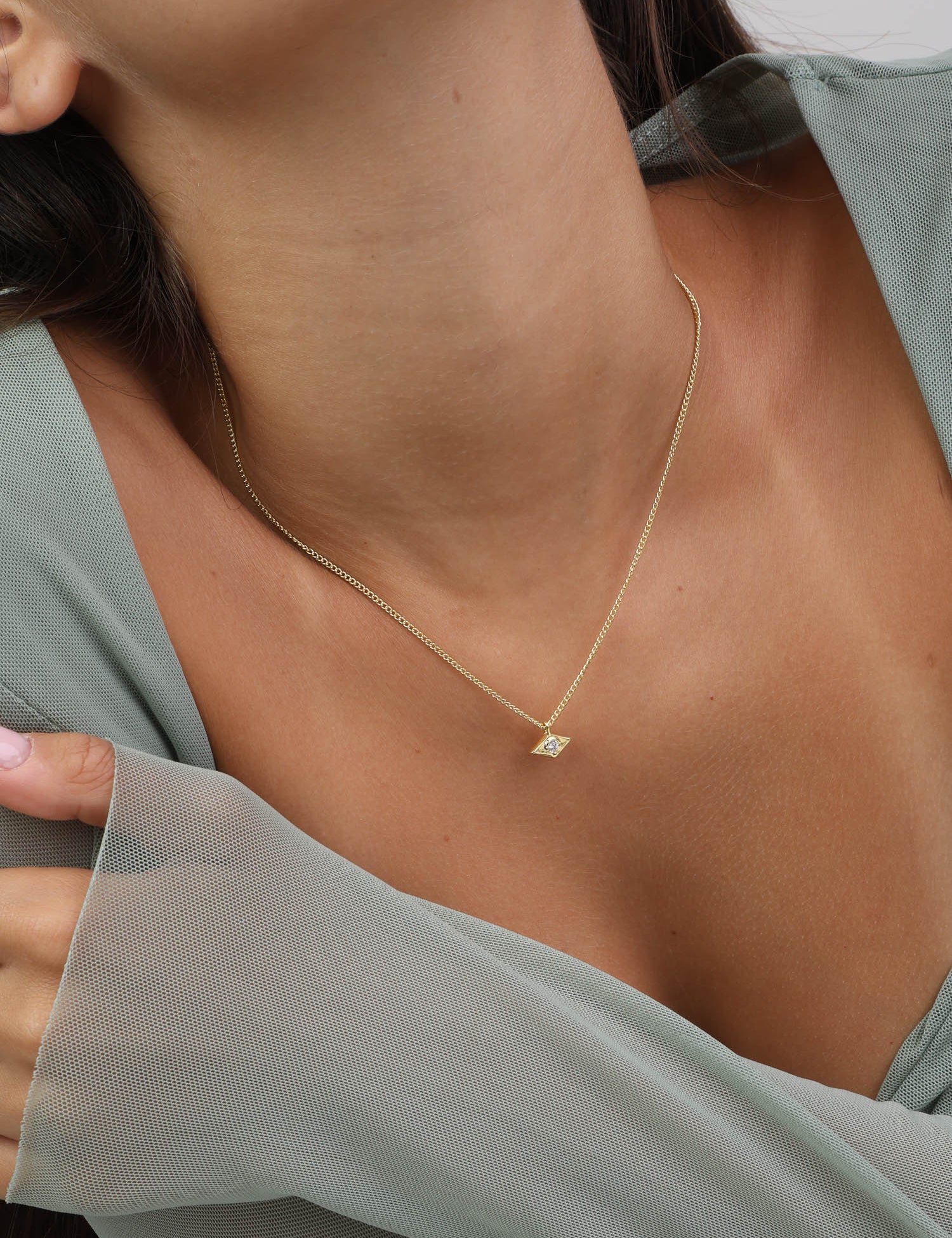 Fio com pendente, Banhado a Ouro, Zircónia de cultivo